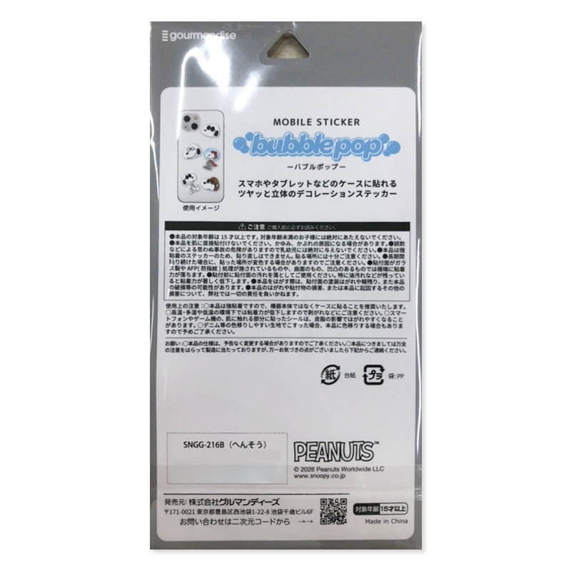 ●対象年齢:15歳~ ●本体サイズ(約・mm):横85×奥行5×縦165 (C) 2026 Peanuts Worldwide LLC