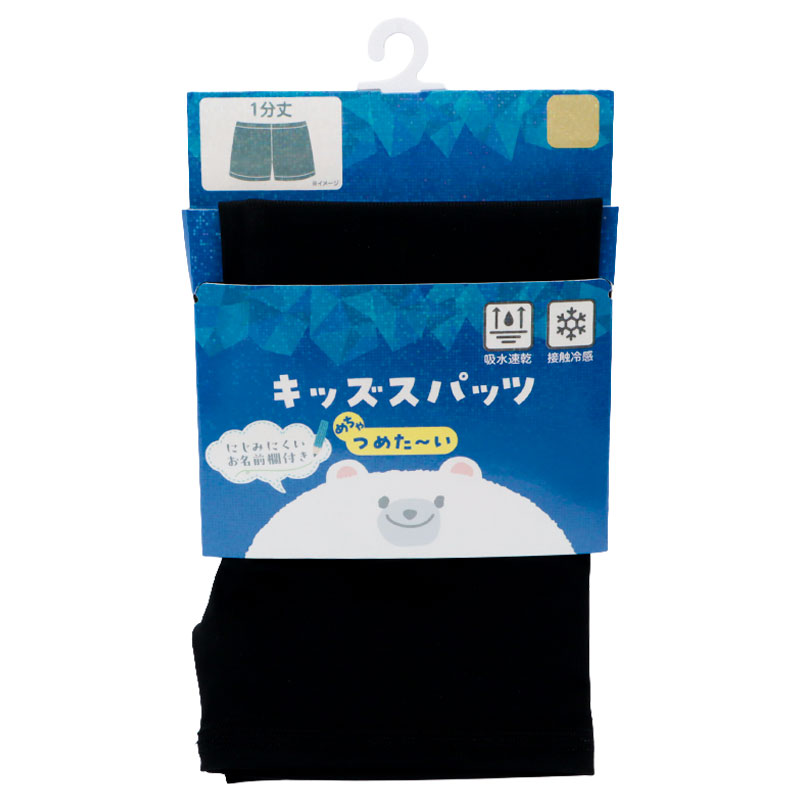 [キッズ]1分丈スパッツ 超冷感 無地 ブラック