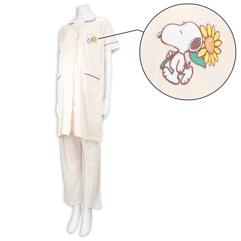 [授乳仕様]半袖パジャマ スヌーピー アイボリー