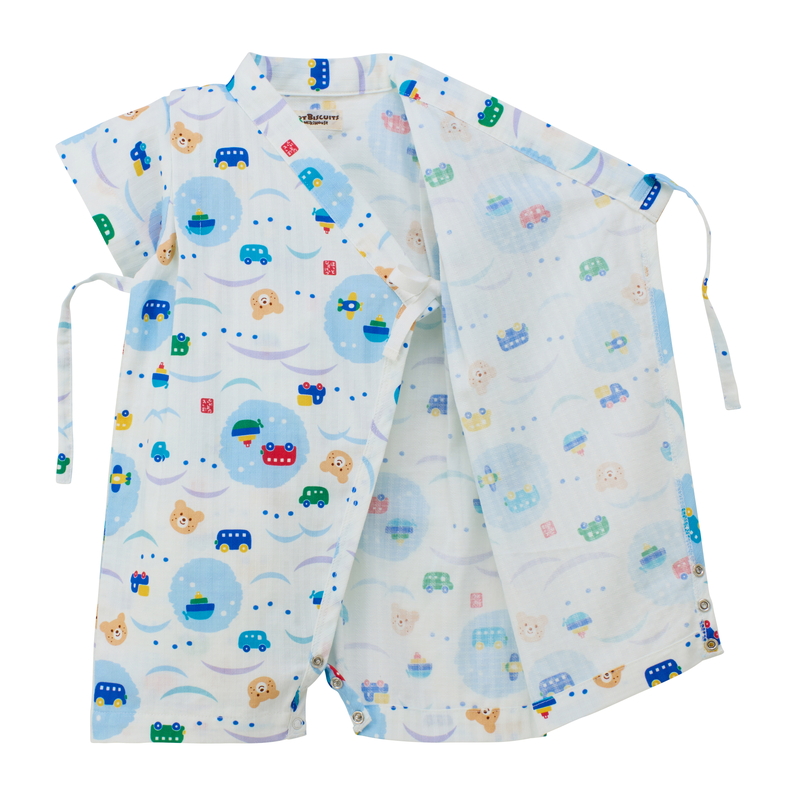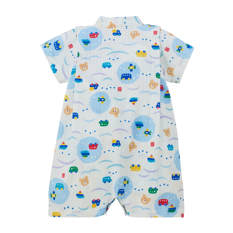 打ち合わせ仕様でお着替えしやすく、股下はホック付きでオムツ替えも簡単。