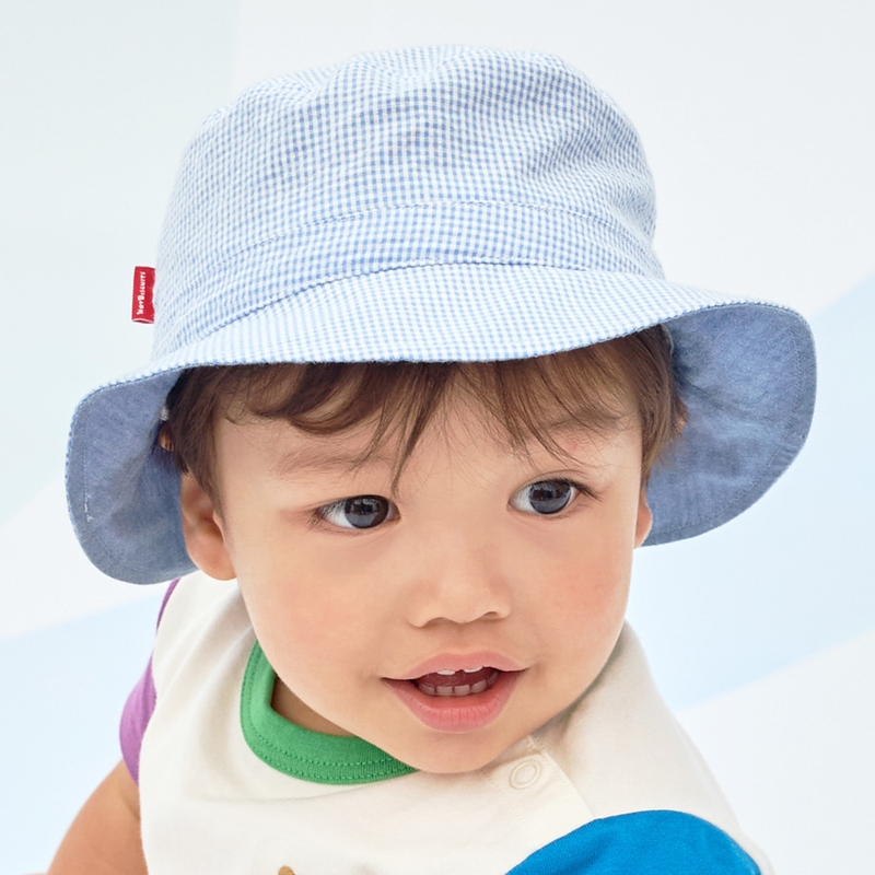●素材=(紺)先染デニム、(耳部分・つば裏)先染ギンガム、(ブルー)先染サッカーギンガム、(耳部分・つば裏)ダンガリー ●品質=綿 100% ●原産国=中国