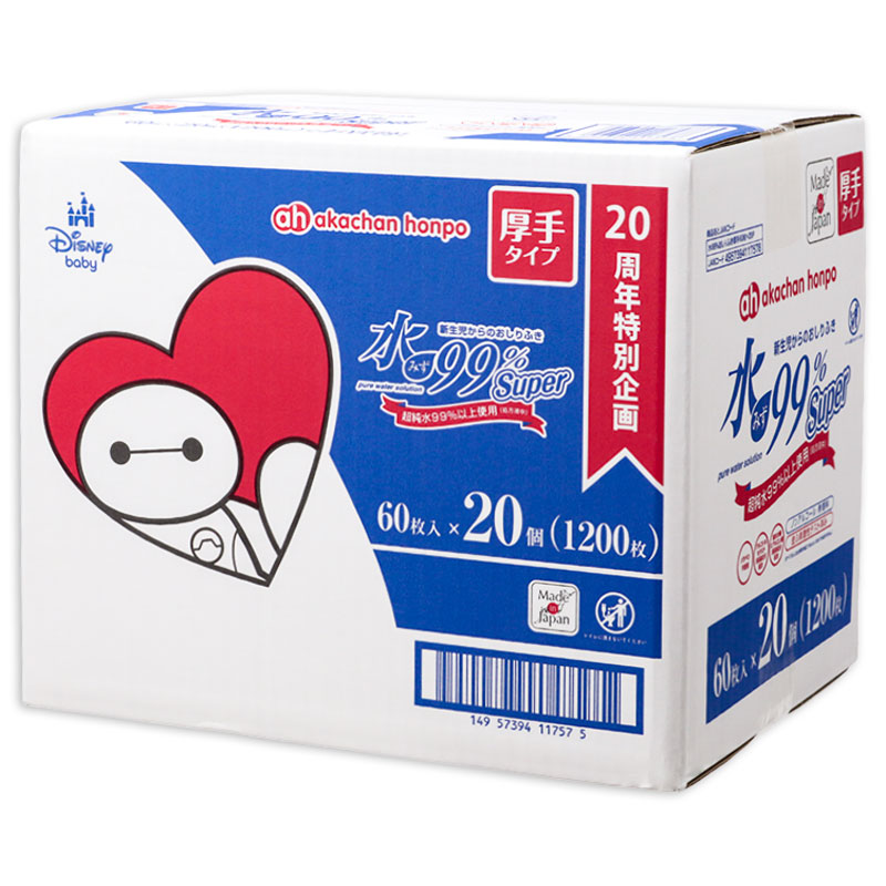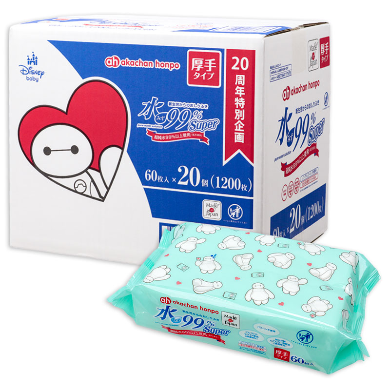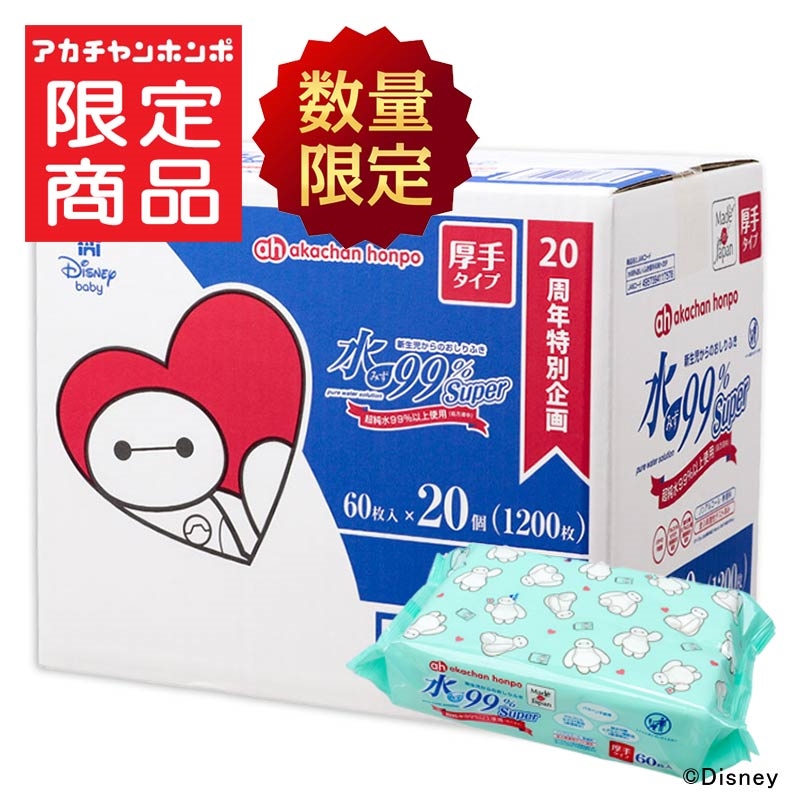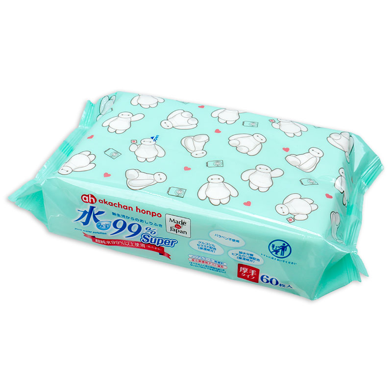 化粧品の技術で、新生児から使えるおしりふきをつくりました。 ●”水”にこだわり、超純水※1を99%以上使用しています。 ●防腐剤を必要最小限に抑えた赤ちゃんのおしりふきです。 ●パラベン、プロピレングリコール(PG)は配合していません。 ●お肌を健やかに保つ加水分解ヒアルロン酸(保湿成分)を配合しています。 ●ふき取り性に優れた特殊シートを採用。 ●お肌にやさしい弱酸性です。 ※1 水の精製技術を駆使して不純物を取り除いた、純度100%の理論上のH2Oに限りなく近い水のこと。 (c)Disney ※トイレに流さないでください。