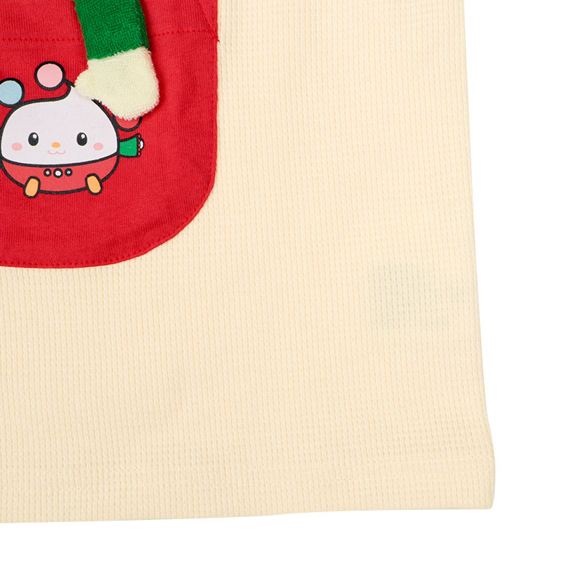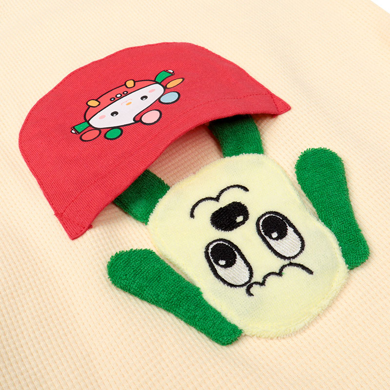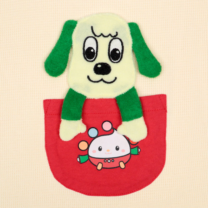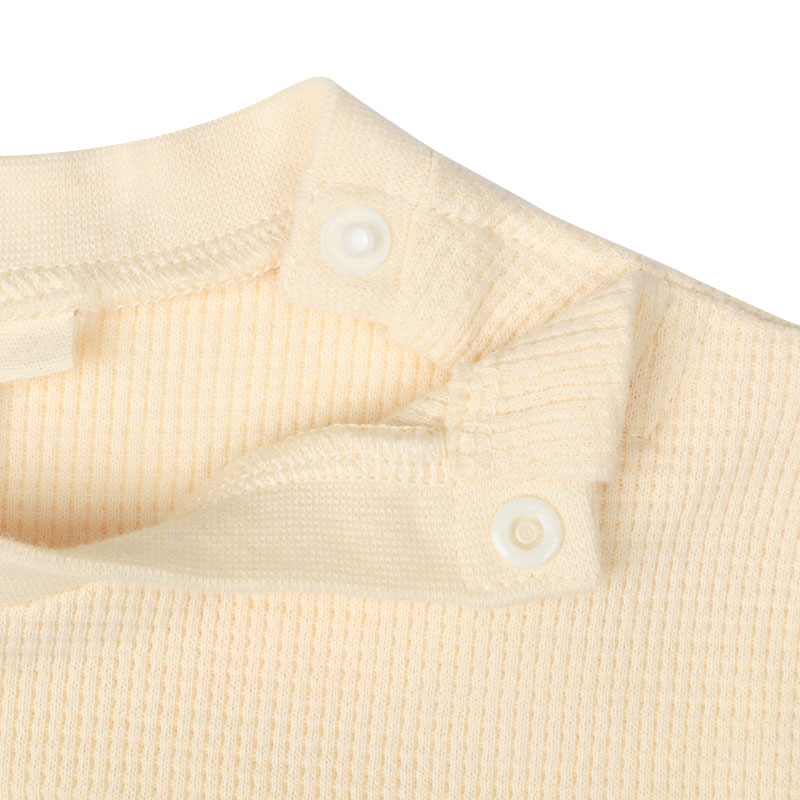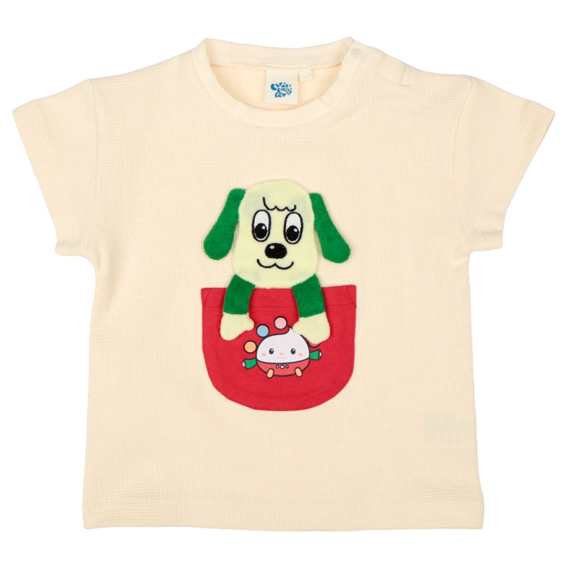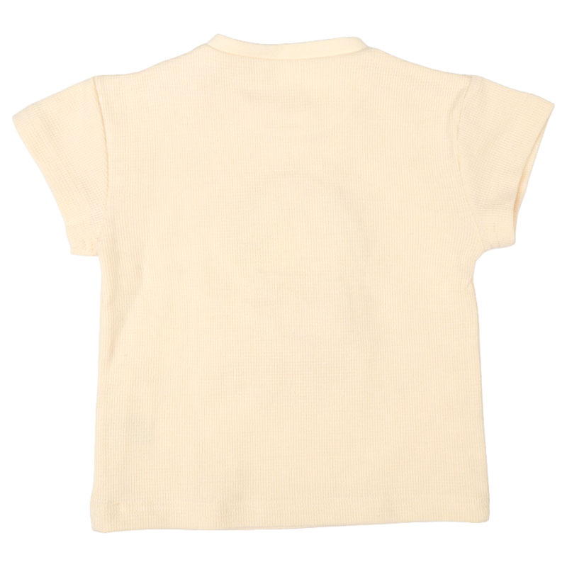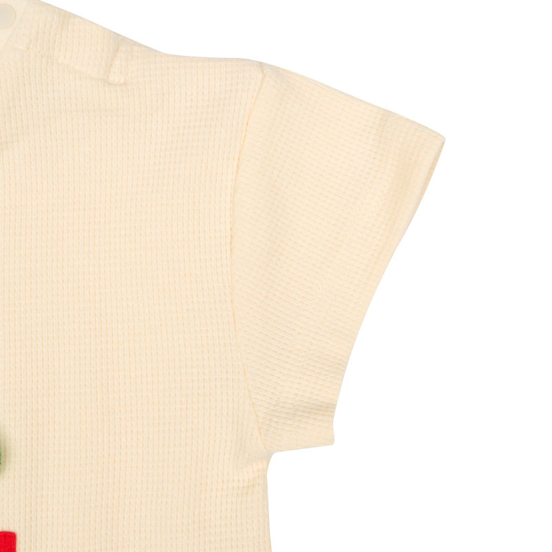 <商品サイズ> 80(身丈34・身幅30・肩幅29・袖丈6.75) 90(身丈36・身幅31・肩幅30・袖丈7) 100(身丈40・身幅33・肩幅32・袖丈7.5) <素材> 本体 綿100% リブ部分 綿95%ポリウレタン5%