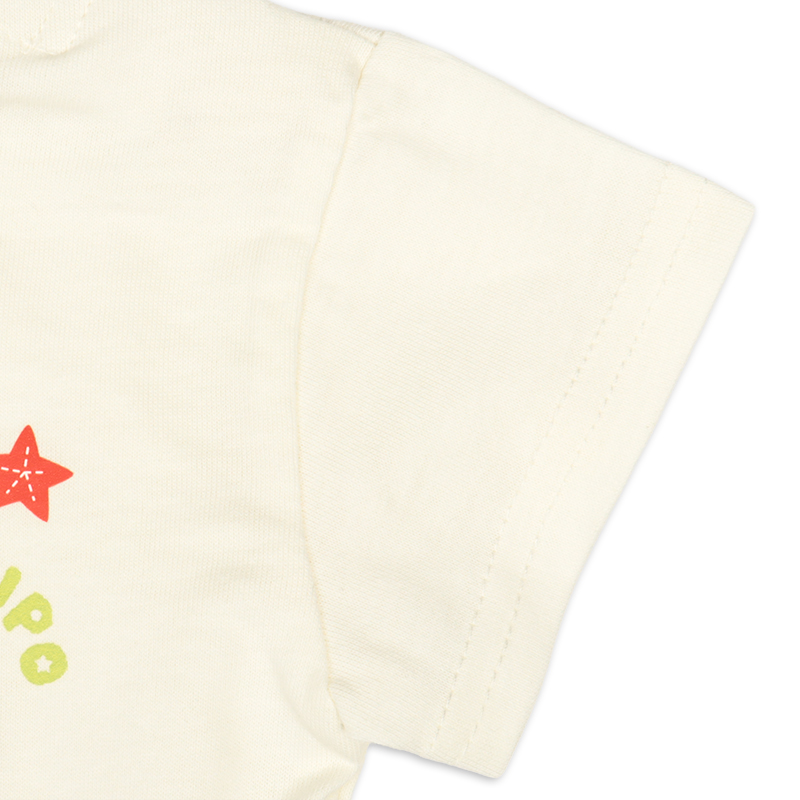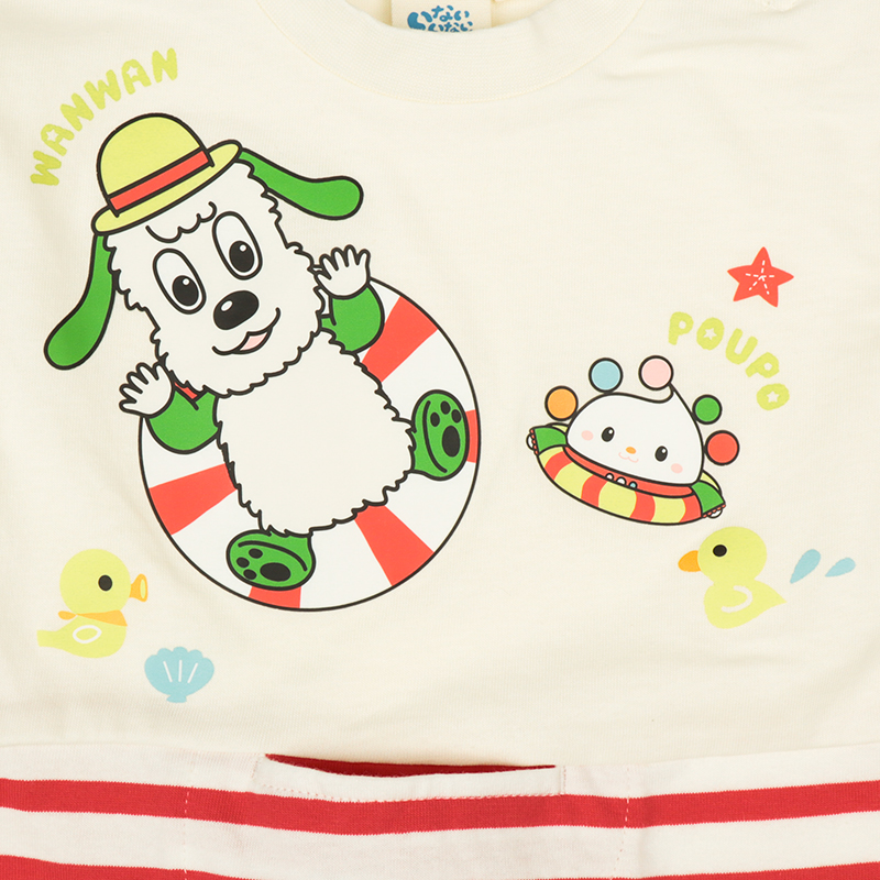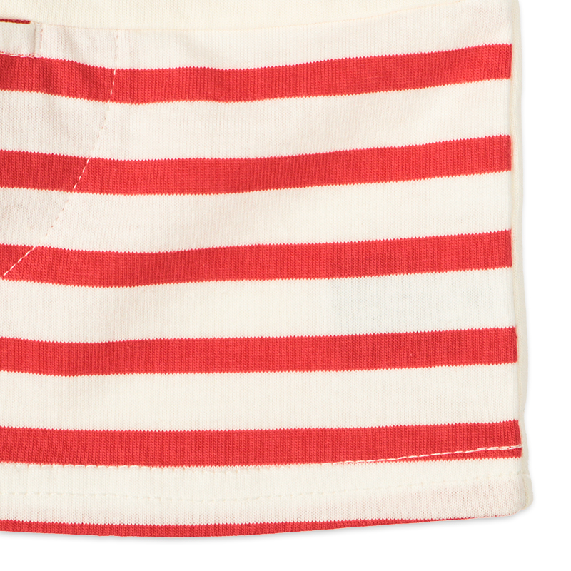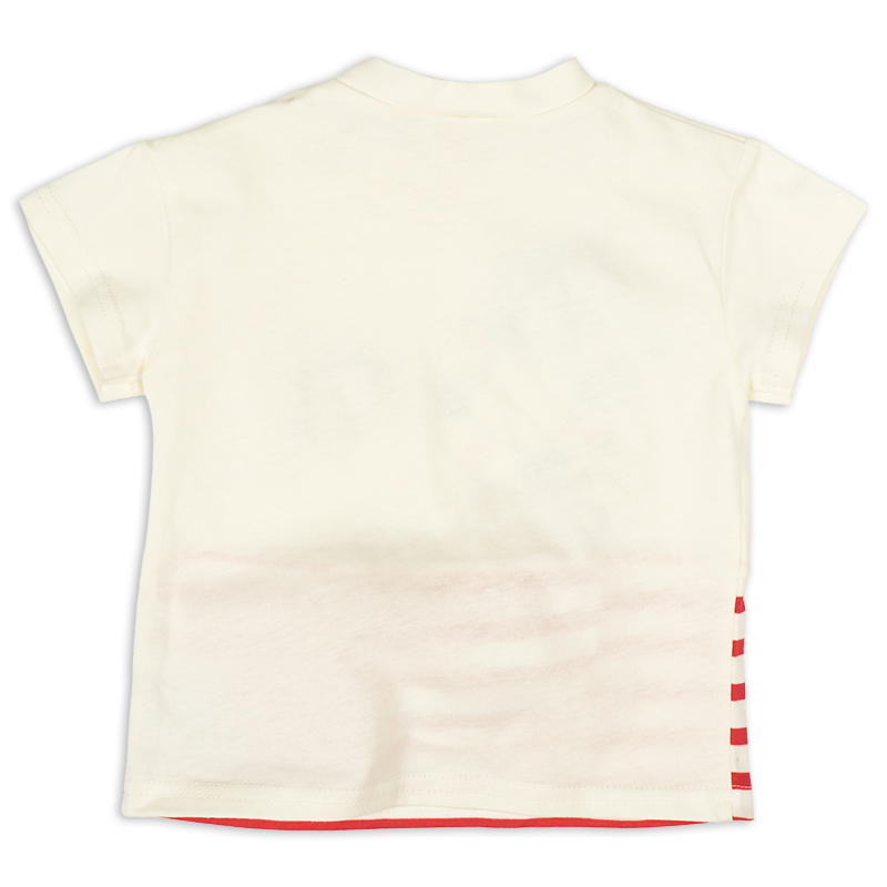 <商品サイズ> 80(身丈34・身幅30・肩幅29・袖丈6.75) 90(身丈36・身幅31・肩幅30・袖丈7) 100(身丈40・身幅33・肩幅32・袖丈7.5) <素材> 本体 綿100% リブ部分 綿95%ポリウレタン5%