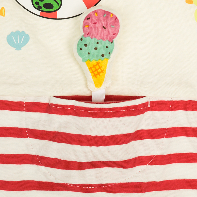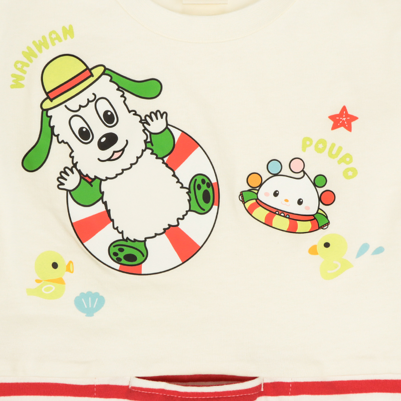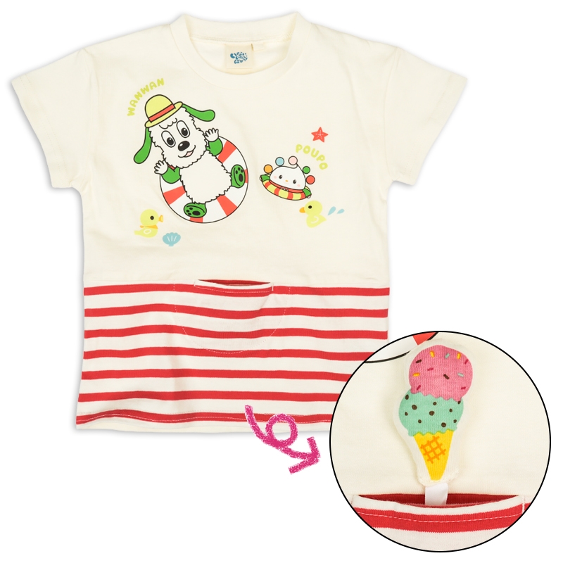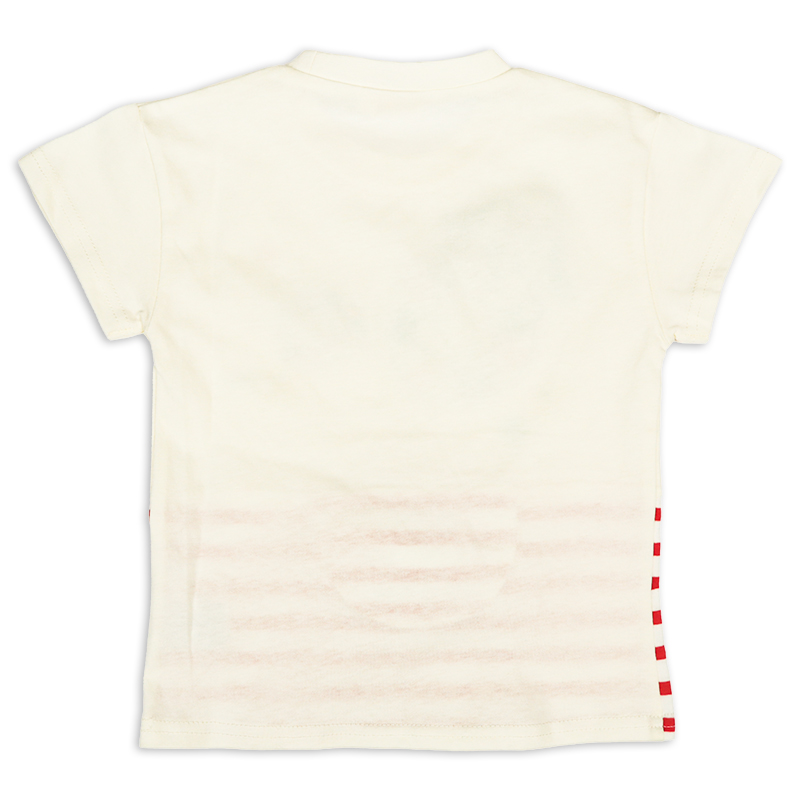 <商品サイズ> 80(身丈34・身幅30・肩幅29・袖丈6.75) 90(身丈36・身幅31・肩幅30・袖丈7) 100(身丈40・身幅33・肩幅32・袖丈7.5) <素材> 本体 綿100% リブ部分 綿95%ポリウレタン5%