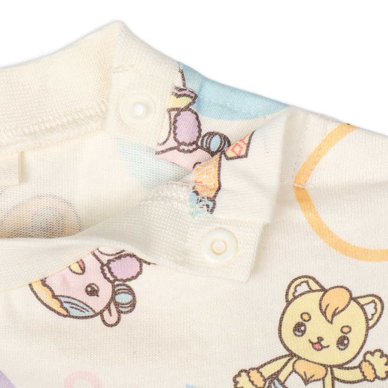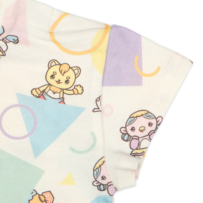 <商品サイズ> 80(身丈34・身幅30・肩幅29・袖丈6.75) 90(身丈36・身幅31・肩幅30・袖丈7) 100(身丈40・身幅33・肩幅32・袖丈7.5) <素材> 本体 綿100% リブ部分 綿95%ポリウレタン5%