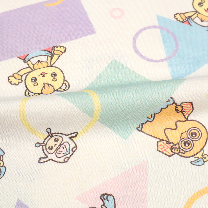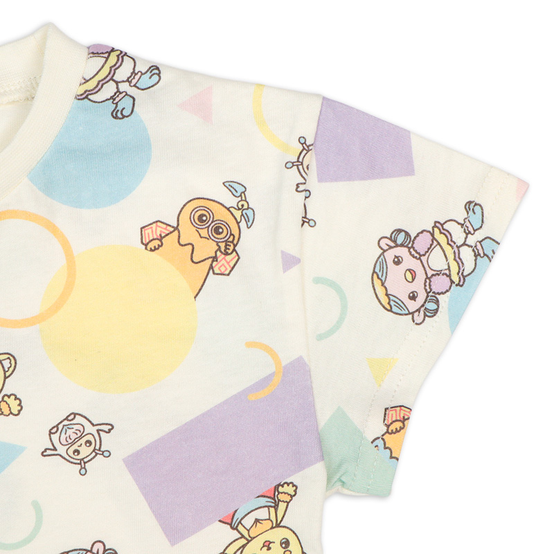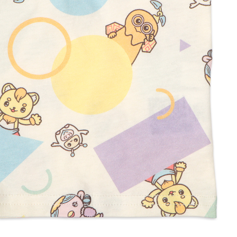 <商品サイズ> 80(身丈34・身幅30・肩幅29・袖丈6.75) 90(身丈36・身幅31・肩幅30・袖丈7) 100(身丈40・身幅33・肩幅32・袖丈7.5) <素材> 本体 綿100% リブ部分 綿95%ポリウレタン5%