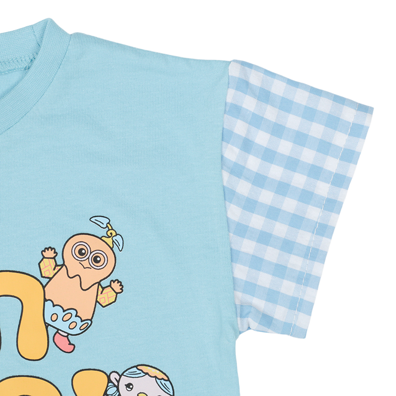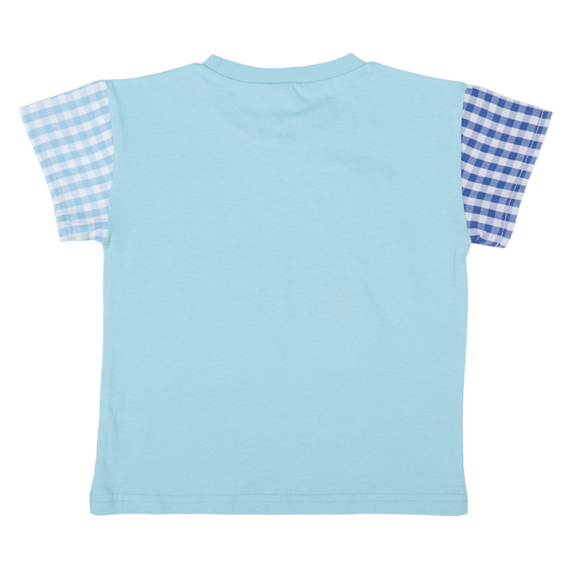 <商品サイズ> 80(身丈34・身幅30・肩幅29・袖丈6.75) 90(身丈36・身幅31・肩幅30・袖丈7) 100(身丈40・身幅33・肩幅32・袖丈7.5) <素材> 本体 綿100% チェック部分 綿50%ポリエステル50%