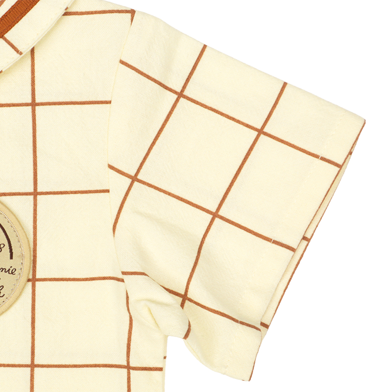 <商品サイズ> 80(身丈31.5・身幅32・肩幅27.5・袖丈10) 90(身丈33.5・身幅33・肩幅28.5・袖丈10.5) 95(身丈35.5・身幅34・肩幅29.5・袖丈11) <素材> 本体:綿100% テープ部分:ポリエステル100%