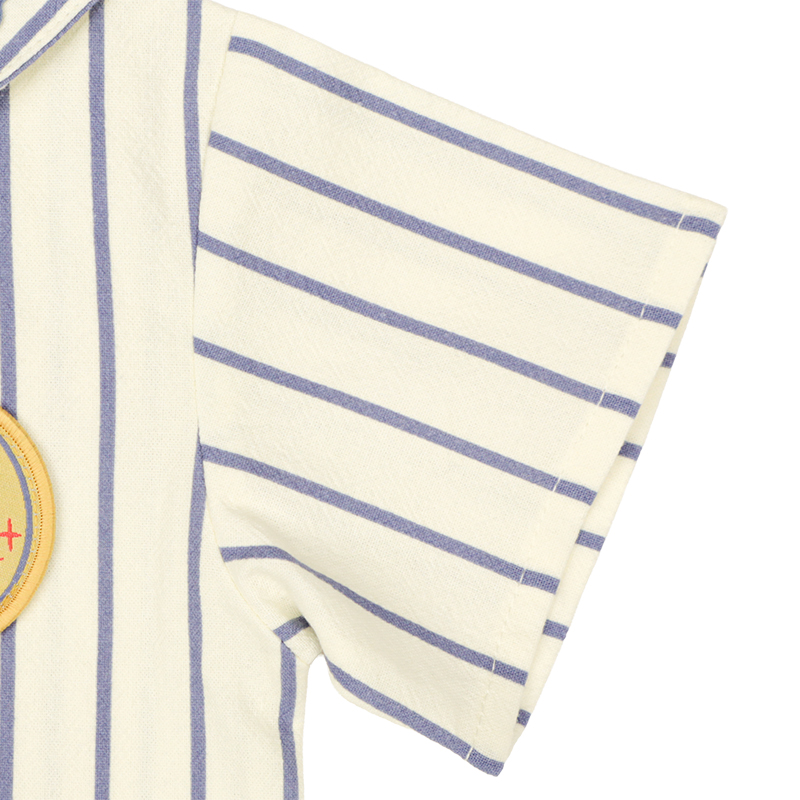 <商品サイズ> 80(身丈31.5・身幅32・肩幅27.5・袖丈10) 90(身丈33.5・身幅33・肩幅28.5・袖丈10.5) 95(身丈35.5・身幅34・肩幅29.5・袖丈11) <素材> 本体:綿100% テープ部分:ポリエステル100%