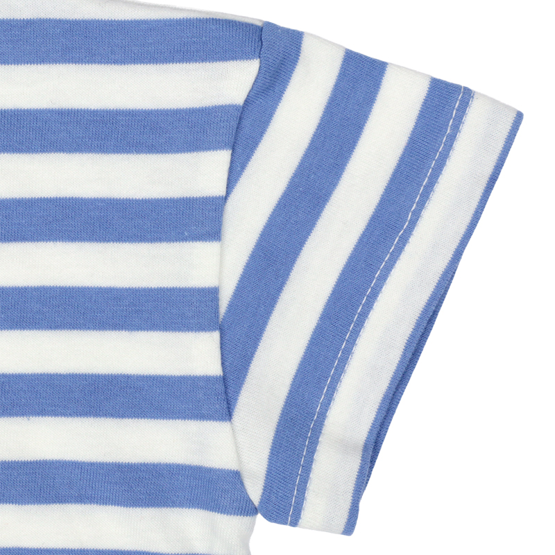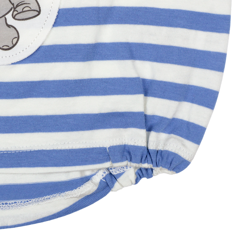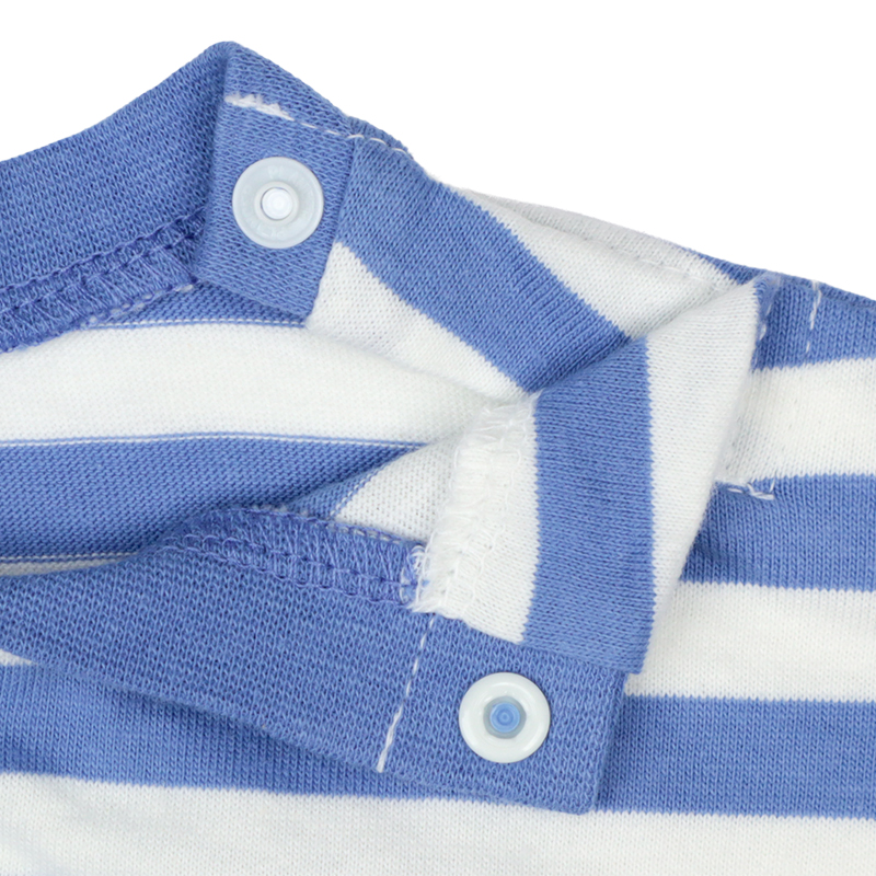 <商品サイズ> 80(身丈36・身幅37・肩幅37・袖丈6.75) 90(身丈38・身幅38・肩幅38・袖丈7) 95(身丈40・身幅39・肩幅39・袖丈7.25) <素材> 本体:綿100% リブ部分:綿95% ポリウレタン5%