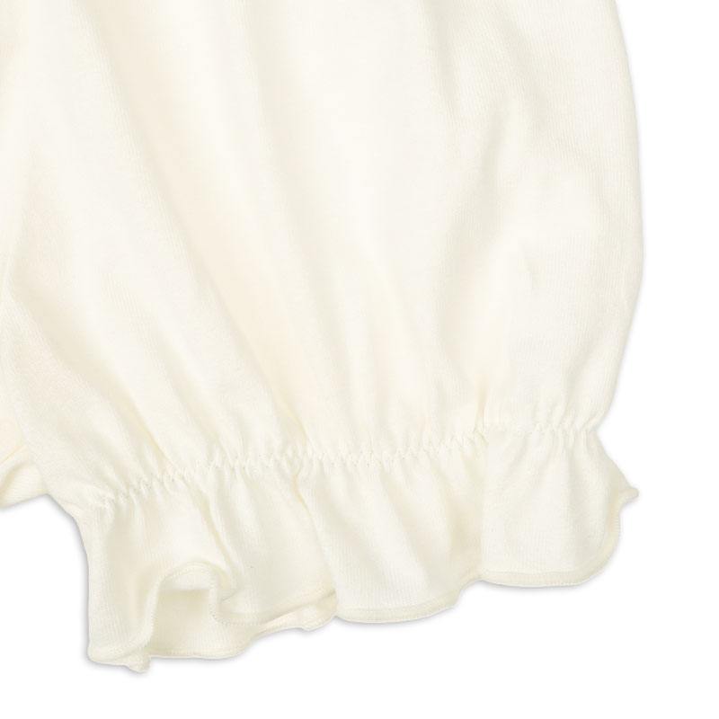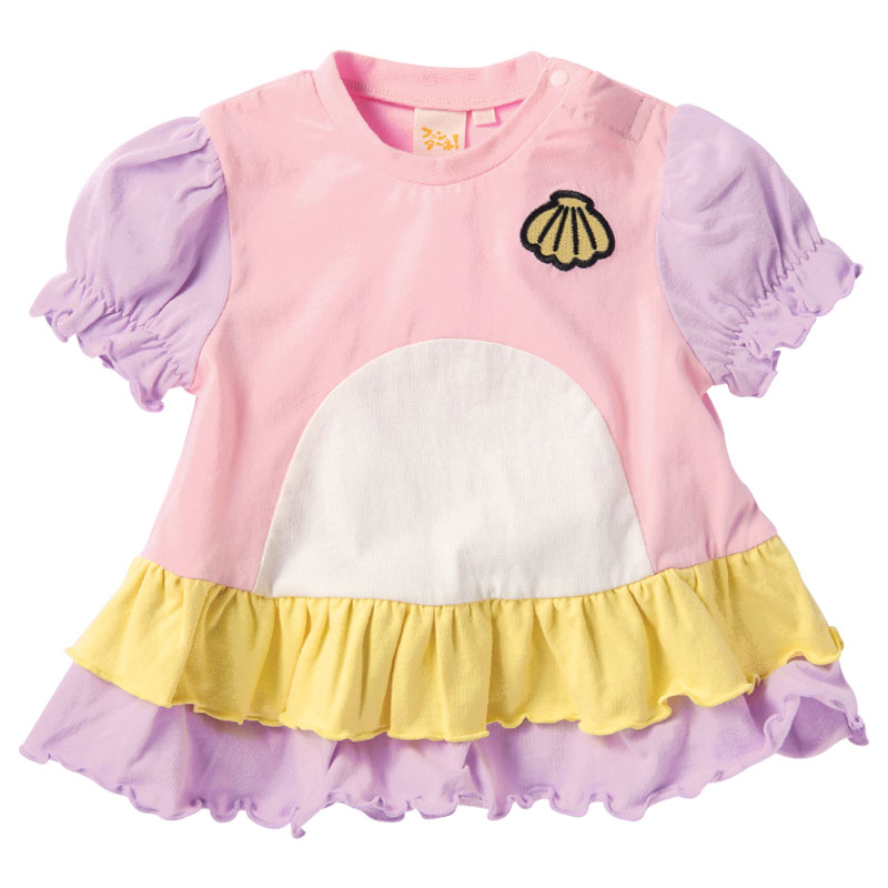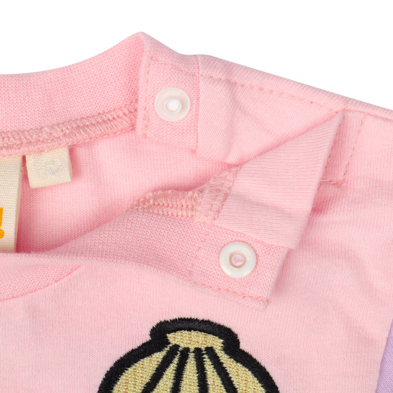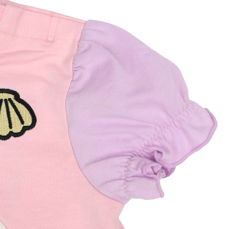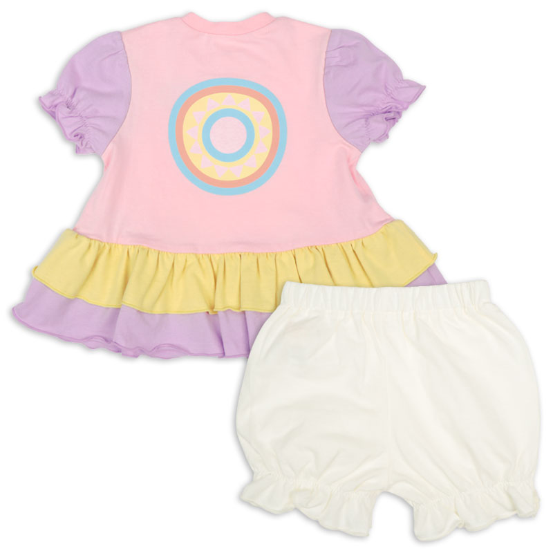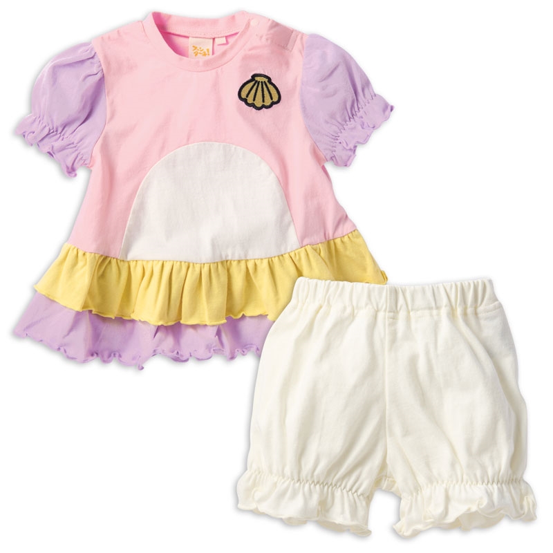 <商品サイズ> 80(身丈37・身幅29・肩幅23.2・袖丈12・股上19・股下6.5・腰まわり62・ウエスト38) 90(身丈39・身幅30・肩幅24・袖丈12.5・股上19.5・股下7・腰まわり64・ウエスト40) 100(身丈43・身幅32・肩幅25.5・袖丈13.5・股上20.5・股下8・腰まわり68・ウエスト44) <素材> <トップス> 本体 綿100% リブ部分 綿95%ポリウレタン5% <ボトムス> 綿100%