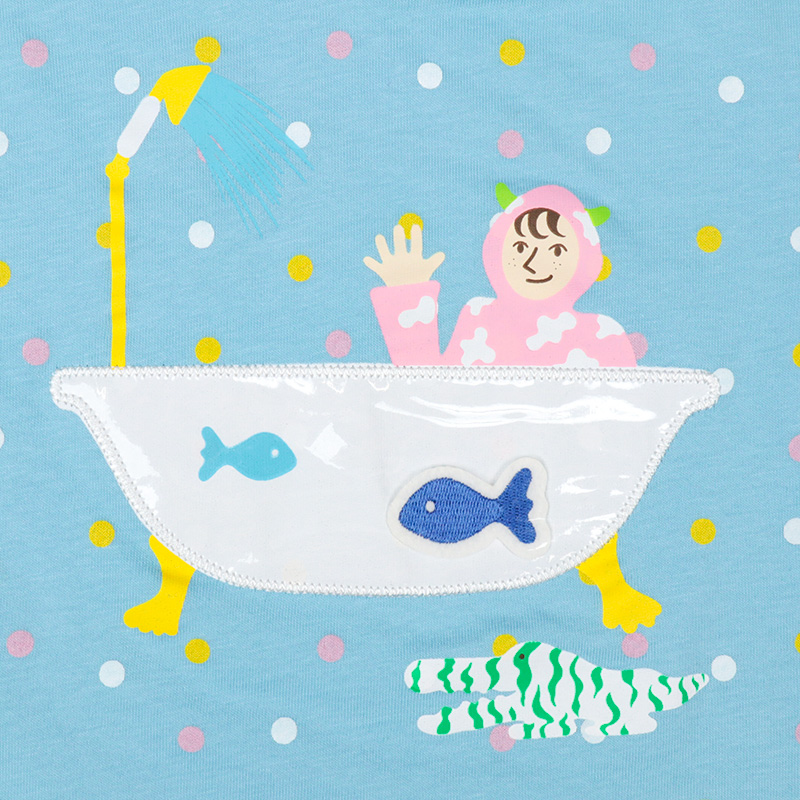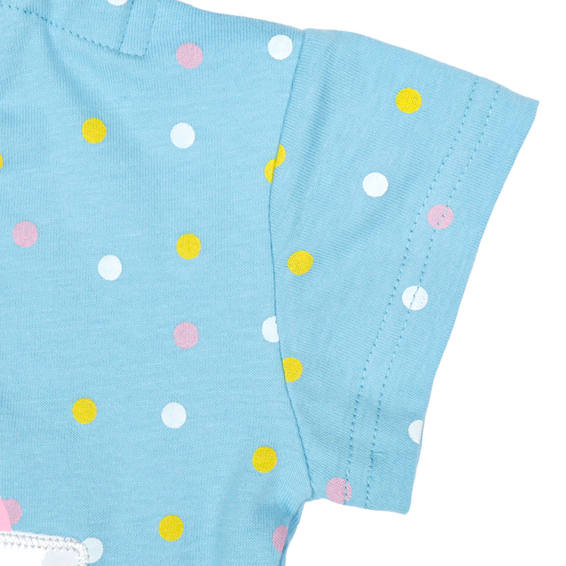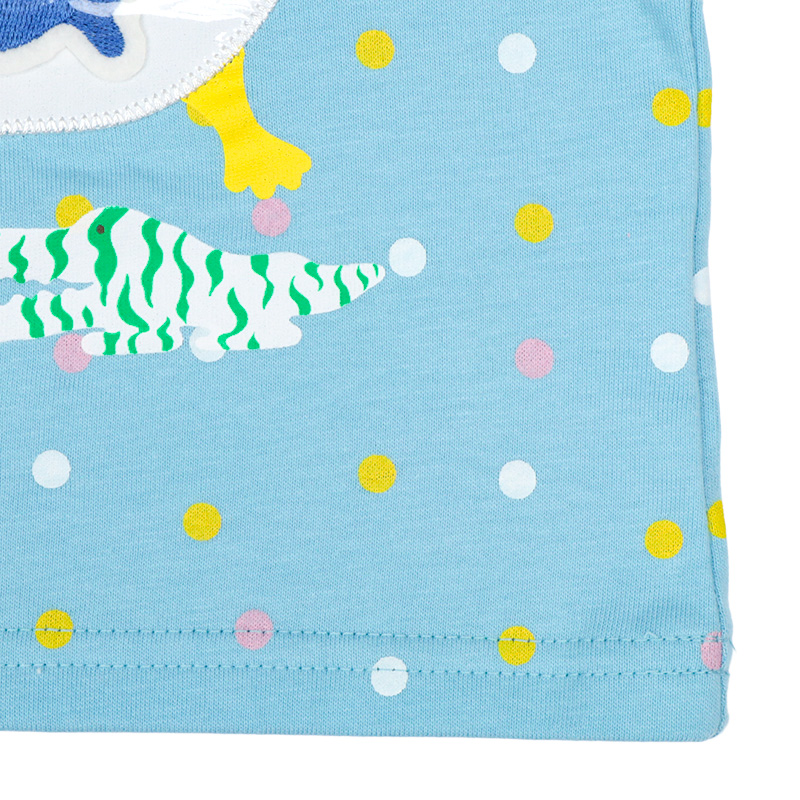 <商品サイズ> 80(身丈34・身幅30・肩幅29・袖丈6.75) 90(身丈36・身幅31・肩幅30・袖丈7) 100(身丈40・身幅33・肩幅32・袖丈7.5) <素材> 本体 綿100% リブ部分 綿95%ポリウレタン5% アップリケ部分 ポリエステル100%