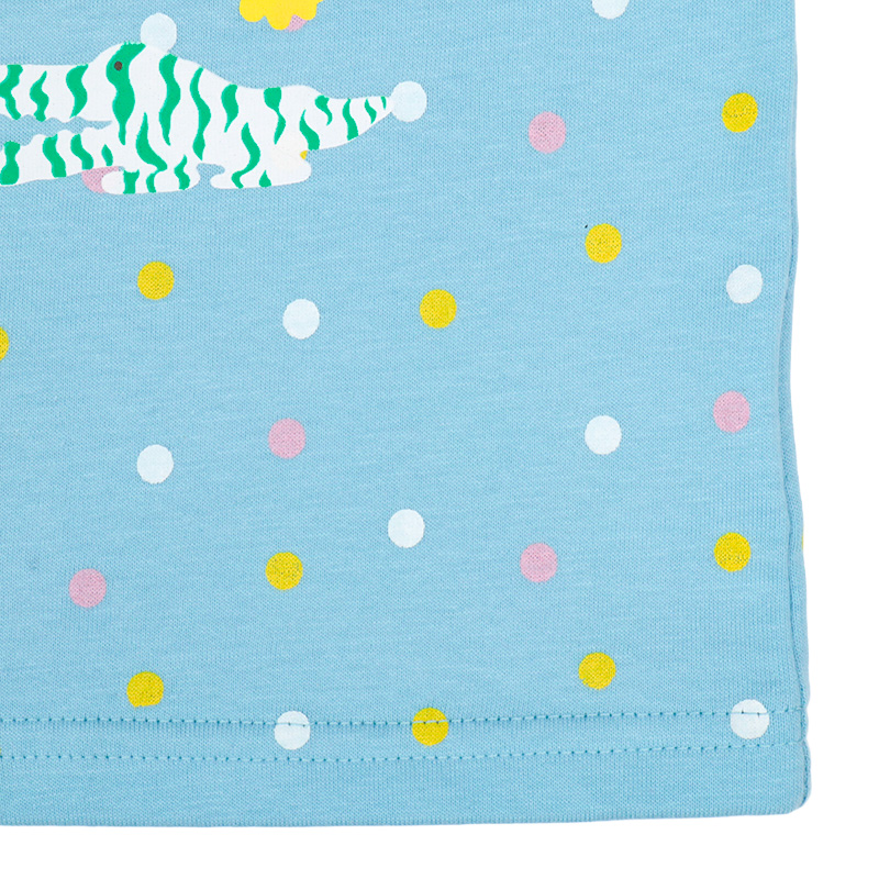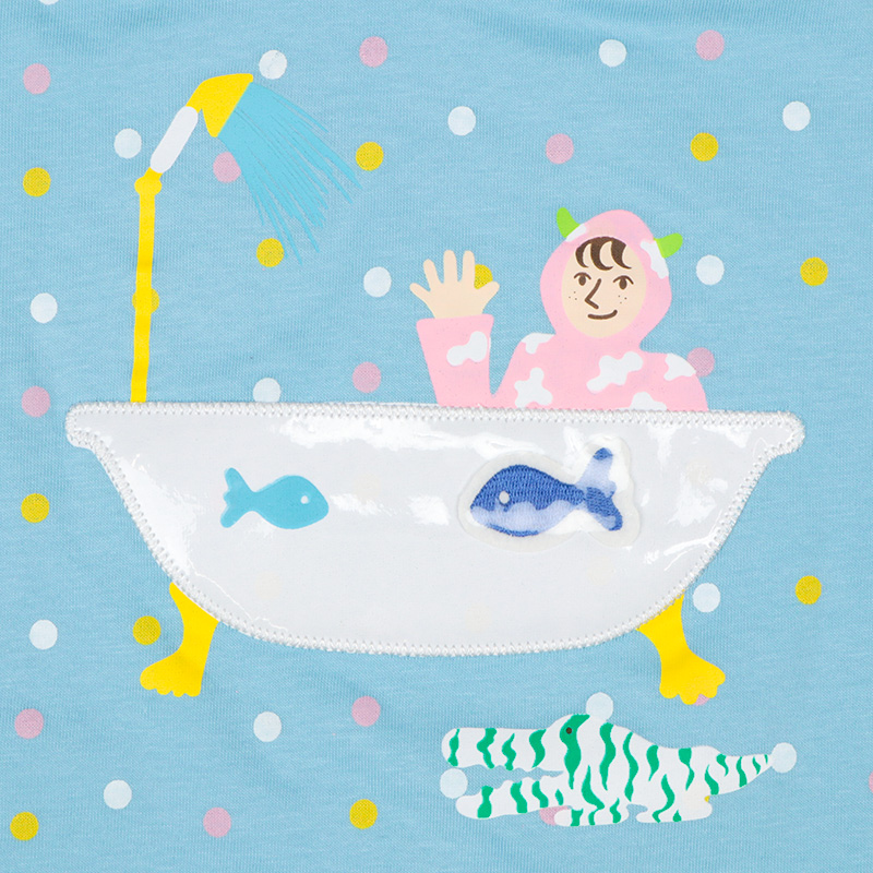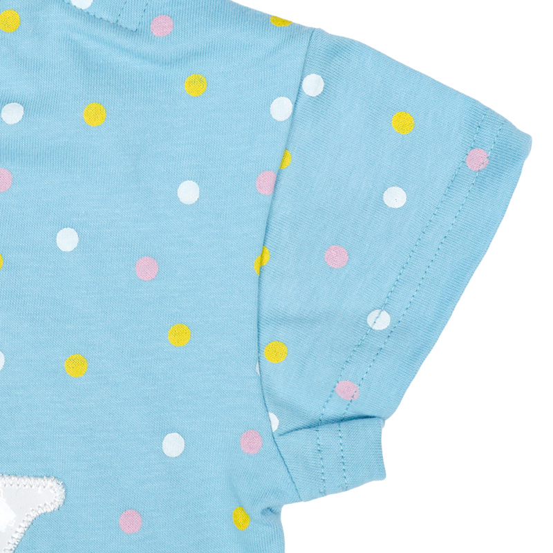 <商品サイズ> 80(身丈34・身幅30・肩幅29・袖丈6.75) 90(身丈36・身幅31・肩幅30・袖丈7) 100(身丈40・身幅33・肩幅32・袖丈7.5) <素材> 本体 綿100% リブ部分 綿95%ポリウレタン5% アップリケ部分 ポリエステル100%