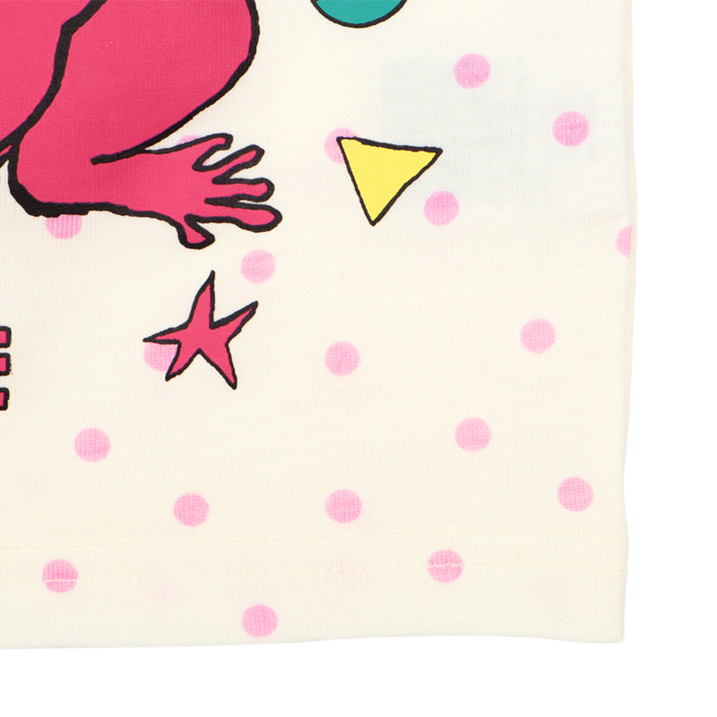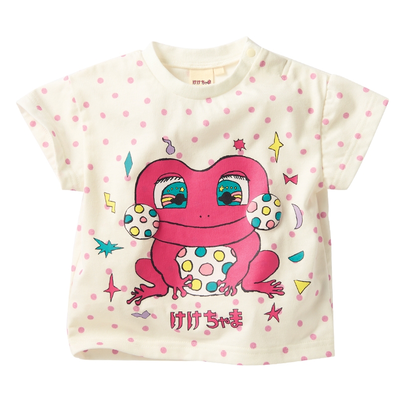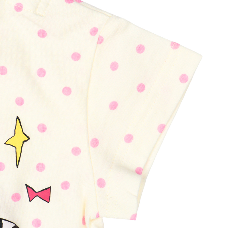 <商品サイズ> 80(身丈34・身幅30・肩幅29・袖丈6.75) 90(身丈36・身幅31・肩幅30・袖丈7) 100(身丈40・身幅33・肩幅32・袖丈7.5) <素材> 本体 綿100% リブ部分 綿95%ポリウレタン5%
