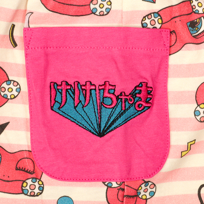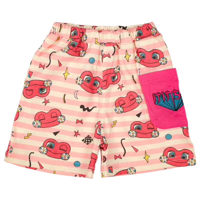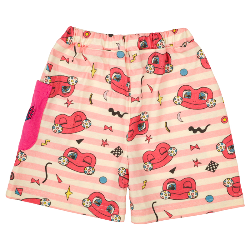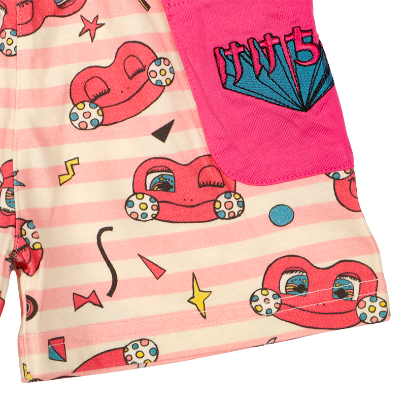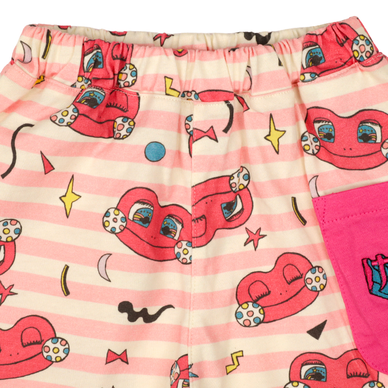 赤ちゃん本舗オリジナルデザインのハーフパンツです。 けけちゃまイメージの元気なカラーボーダーの総柄がキュートなアイテムです。 ポケットにはロゴ刺しゅう入りです。本体は綿100%の天竺素材を使用しています。 普段着からおでかけまで使えます。