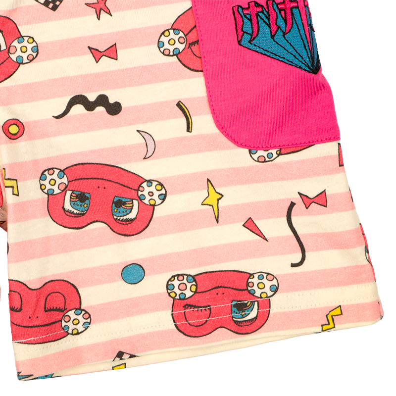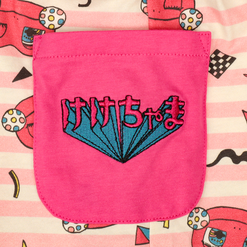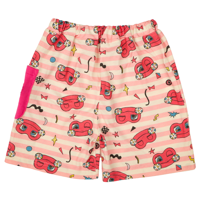 赤ちゃん本舗オリジナルデザインのハーフパンツです。 けけちゃまイメージの元気なカラーボーダーの総柄がキュートなアイテムです。 ポケットにはロゴ刺しゅう入りです。本体は綿100%の天竺素材を使用しています。 普段着からおでかけまで使えます。