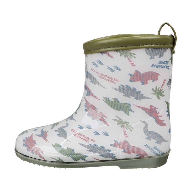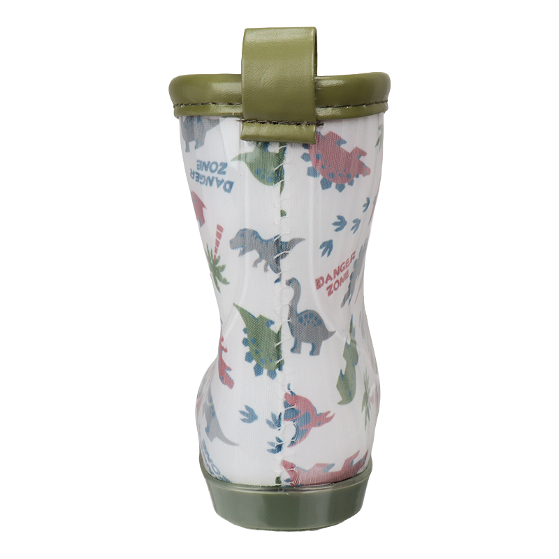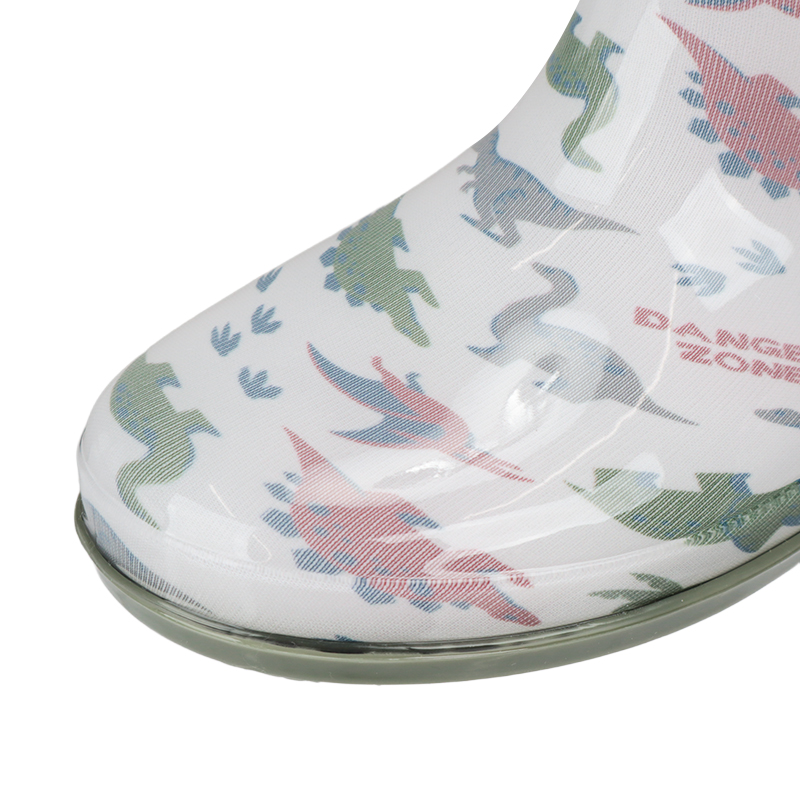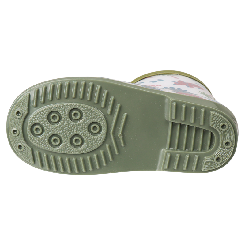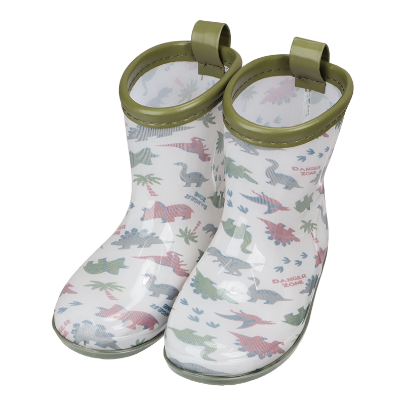 可愛らしい恐竜総柄レインブーツです。 雨の日、雪の日はもちろんのこと、芋ほりなど農業体験、泥んこ遊び、魚とりなど、活躍できる1足です。 ループ付きでお子様がご自分で履きやすい仕様になっております。 安定感あるソールで、滑りやすい雨の日もしっかりサポート。 インソールも取り外し可能で衛生的、名前も記入できます。