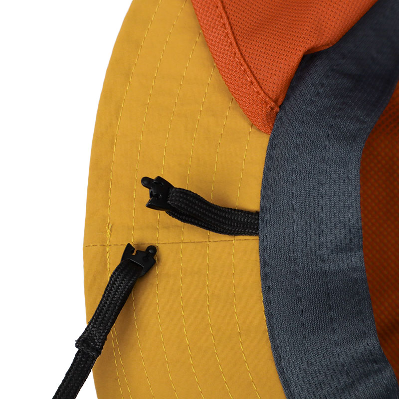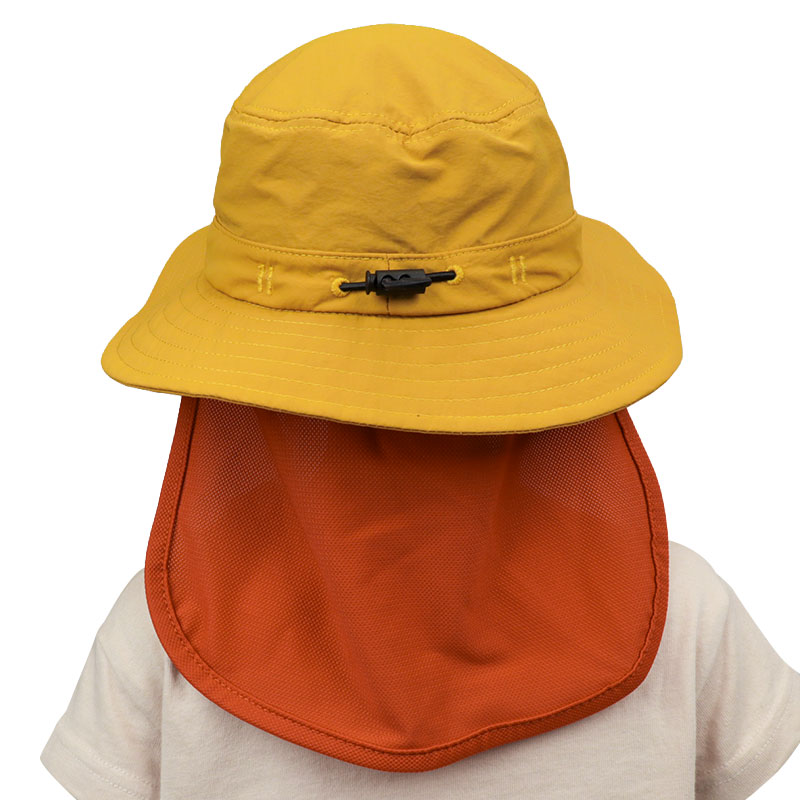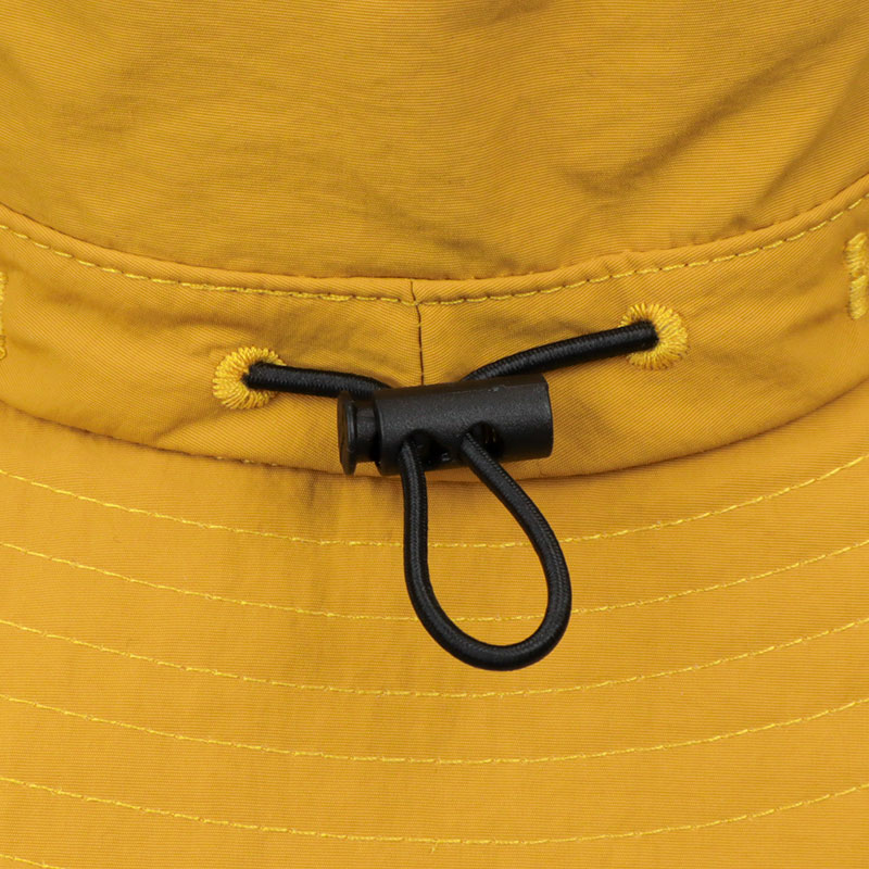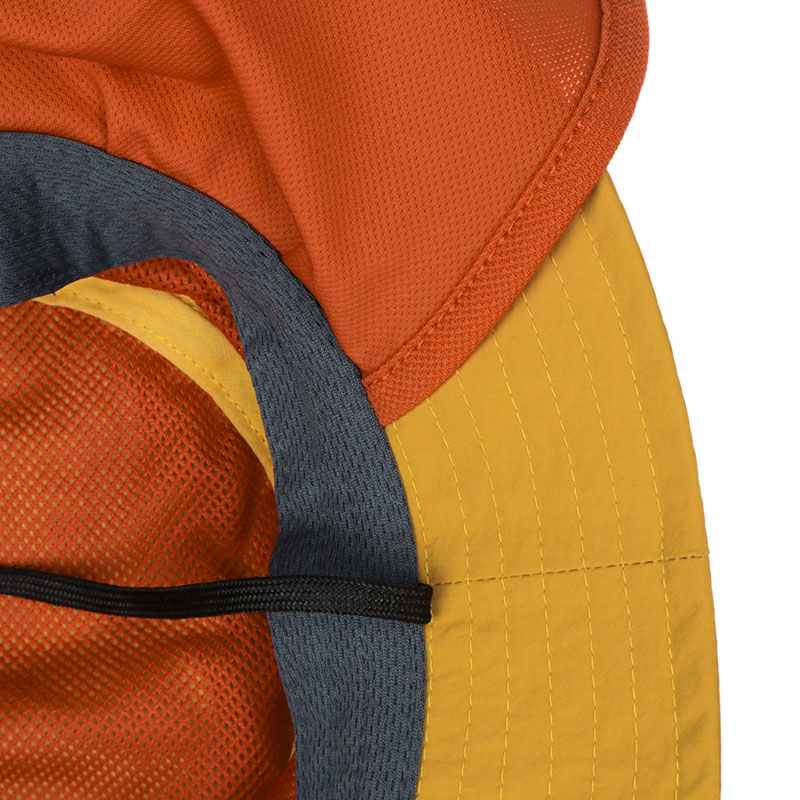 本体生地は撥水加工のナイロンタフタ。後ろの日除の生地は接触冷感素材を使用。スベリは吸水速乾素材です。 アウトドアブランドらしくとても機能的なUPF50+のサンシールド帽子です。 後ろのサイズ調節アジャスターも嬉しい機能です。