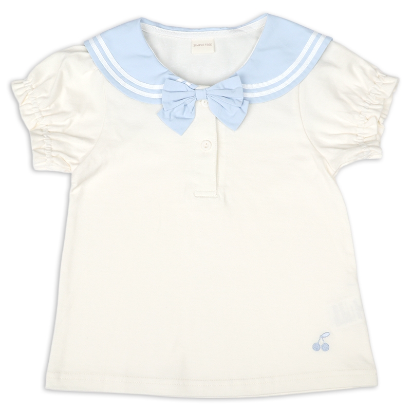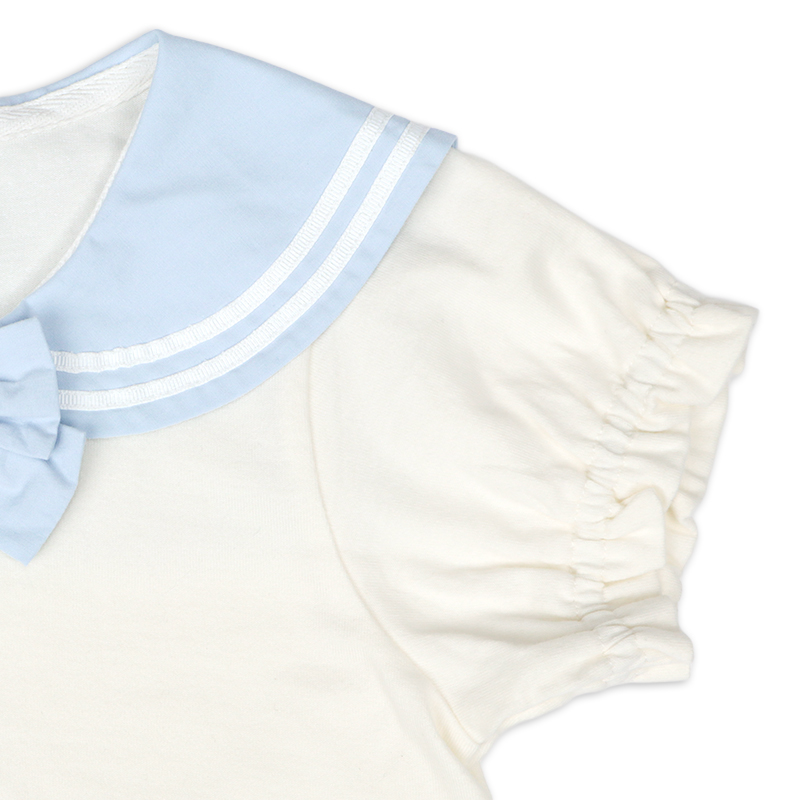 [キッズ]半袖Tシャツ セーラー衿布帛 オフホワイト