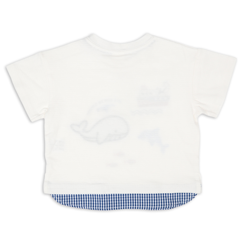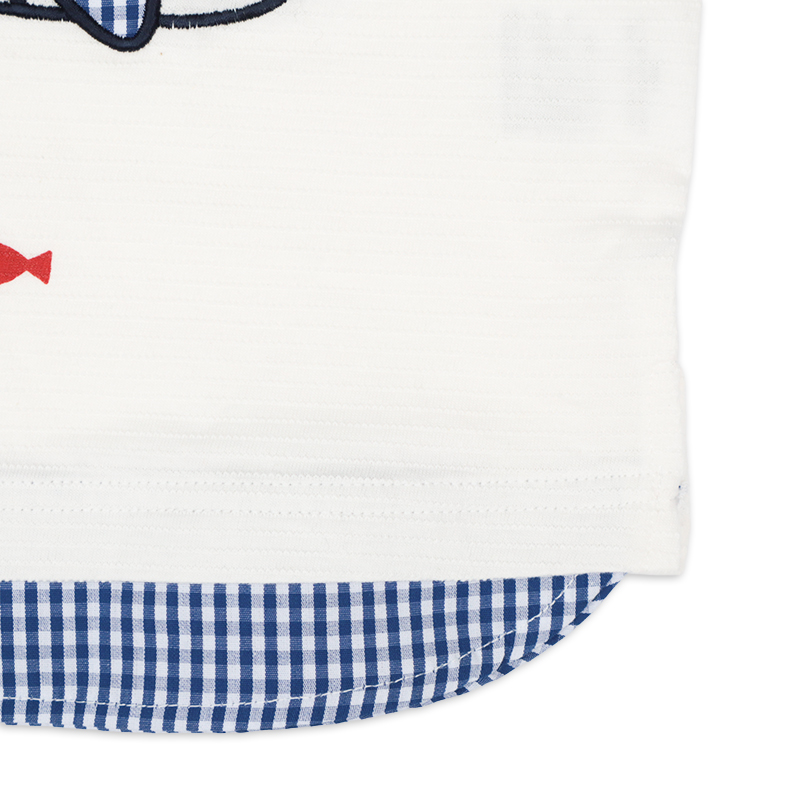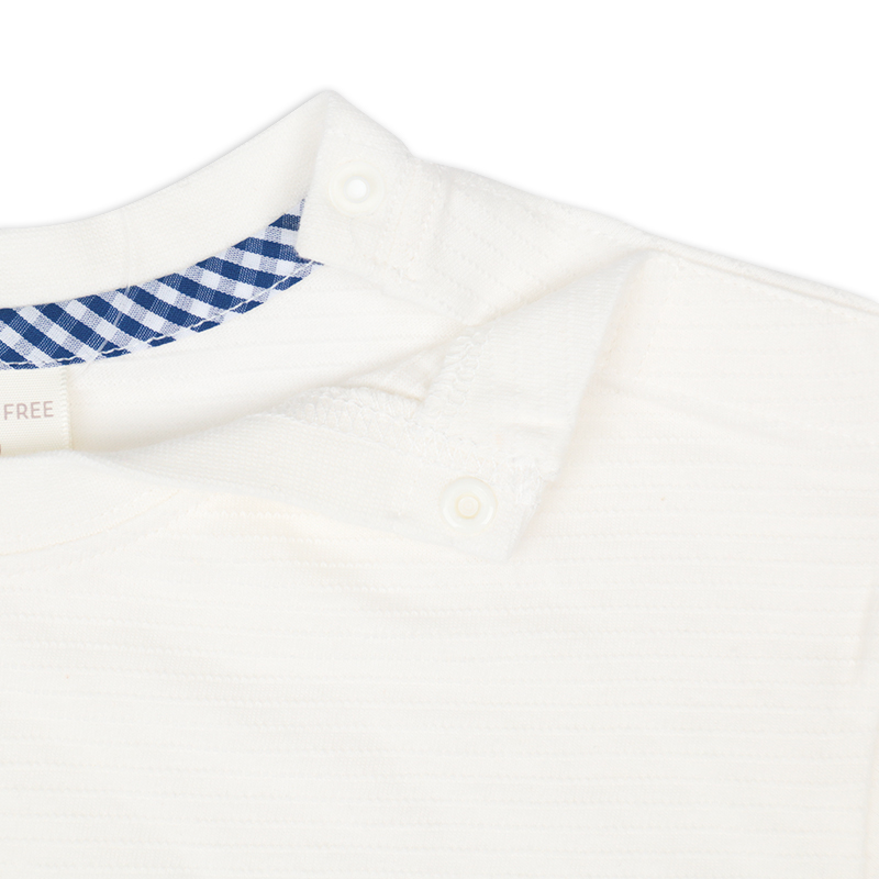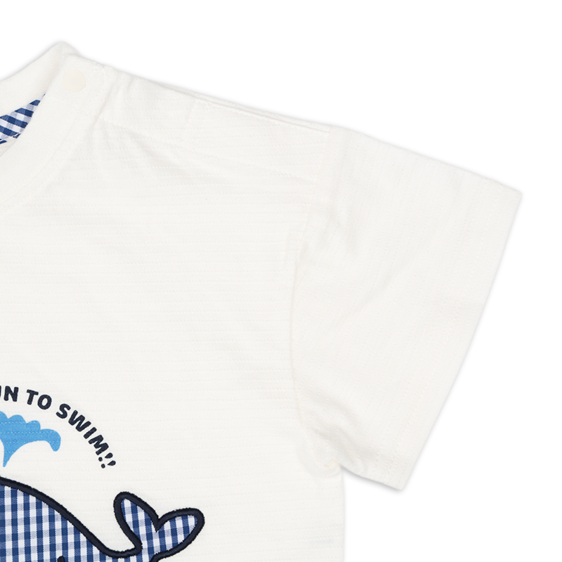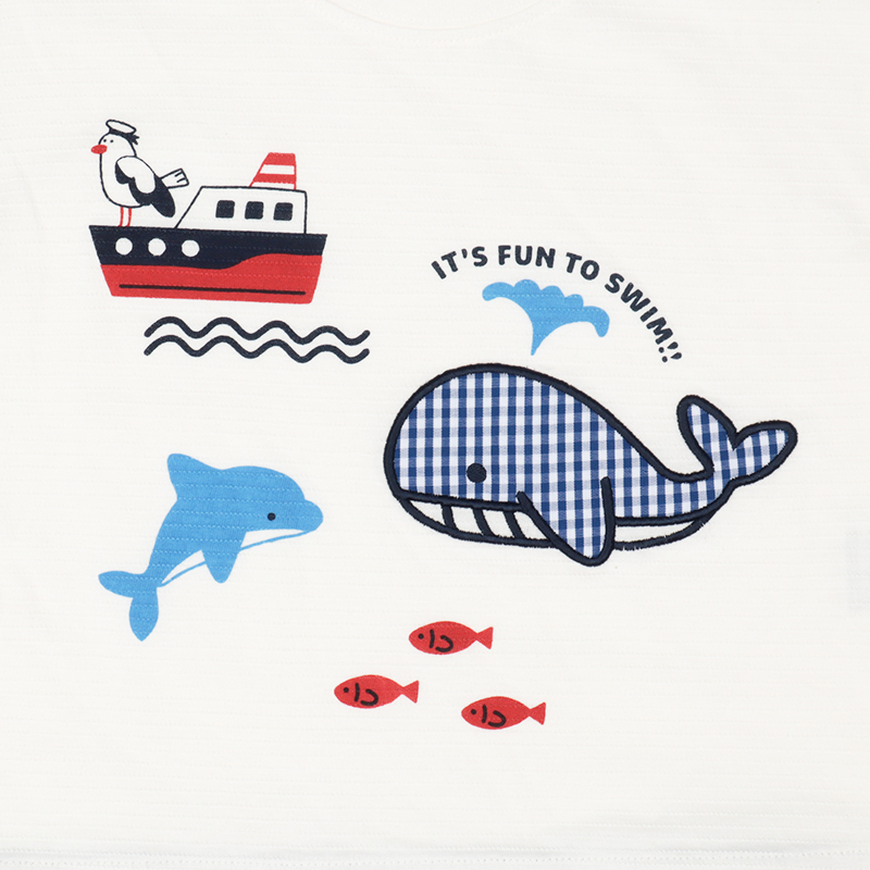 ●素材=本体:綿 100% リブ:綿 93% ポリウレタン7% ●サイズ(約・cm)= 70(身丈29・身幅31・袖丈7.5) 80(身丈31・身幅32・袖丈7.75) 90(身丈33・身幅33・袖丈8) 95(身丈35・身幅34・袖丈8.25)