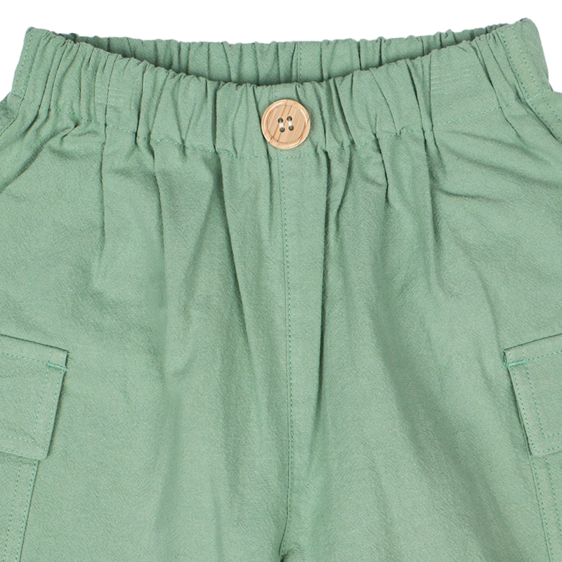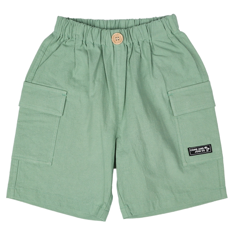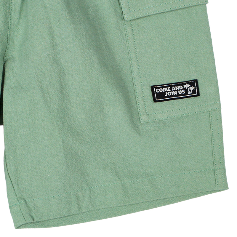 [キッズ]5分丈カーゴパンツ 麻風 グリーン