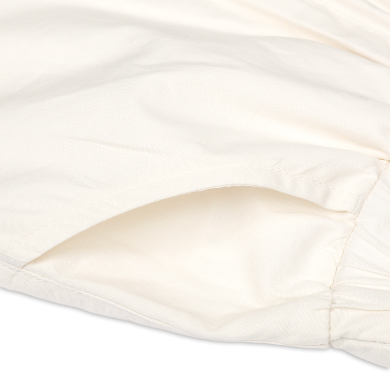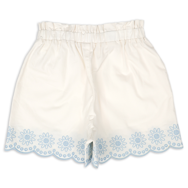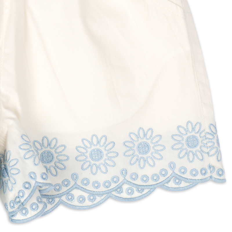 裾にあしらったカットワーク刺しゅうが、シンプルながらもお上品な印象に仕上げています。さらりとした肌触りのブロード素材と、カジュアルなデニムとの2素材展開。暑い夏でもかわいらしく着こなせる1枚となっています。