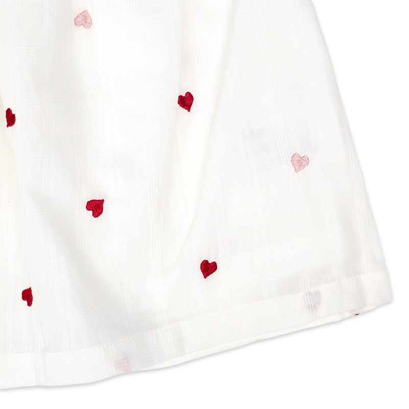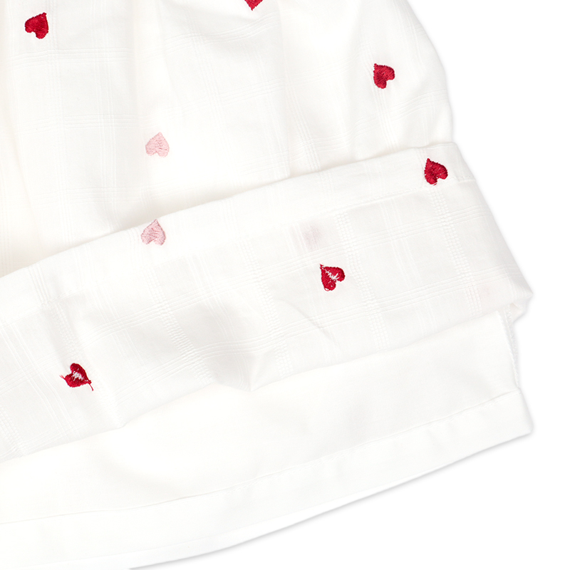 素材 格子柄シーチング 綿100% 裏地 ポリエステル65%綿35% 刺しゅう糸 ポリエステル100% サイズ80/90/95 総丈 43/46/48.5 身巾 27/28/29 裾巾 61.5/64/65