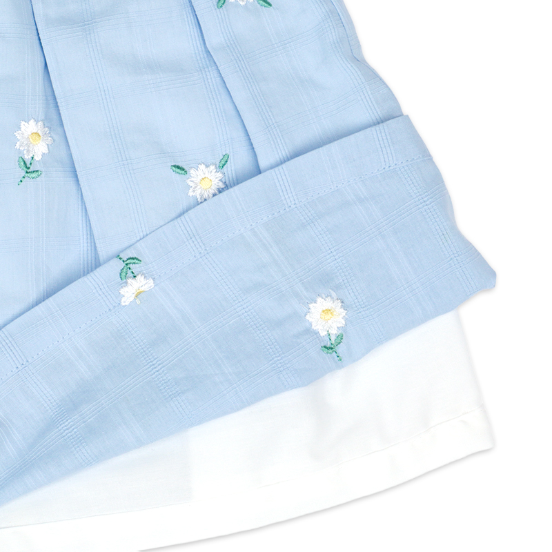 素材 格子柄シーチング 綿100% 裏地 ポリエステル65%綿35% 刺しゅう糸 ポリエステル100% サイズ80/90/95 総丈 43/46/48.5 身巾 27/28/29 裾巾 61.5/64/65