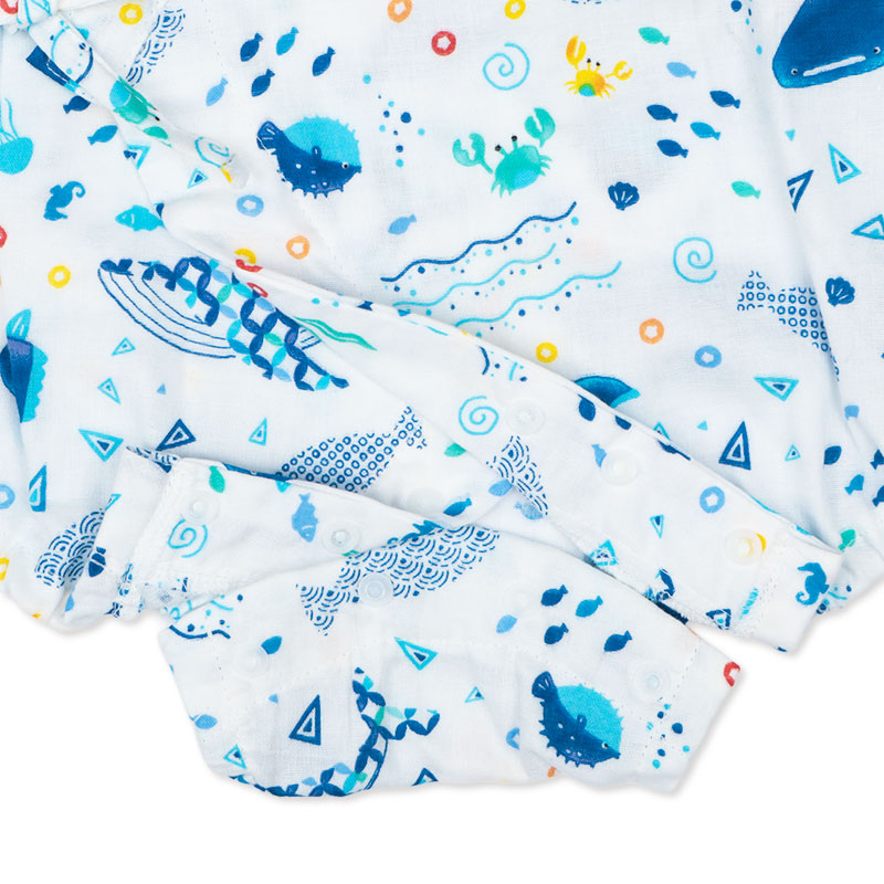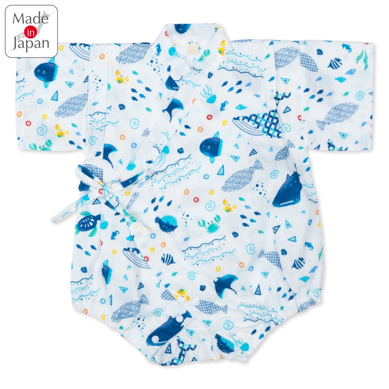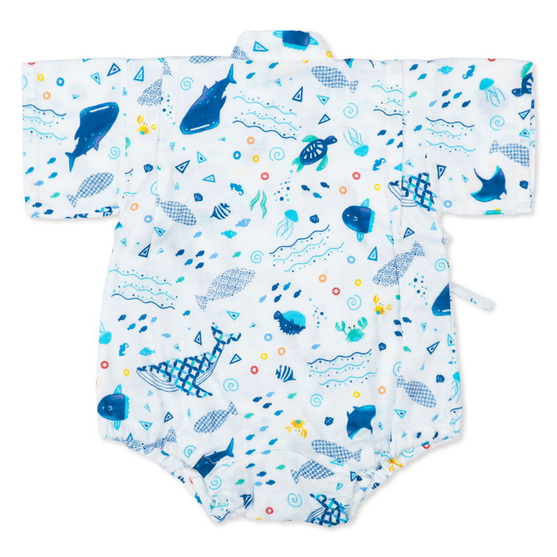 [ベビー]甚平(じんべい)ロンパス 海柄 オフホワイト