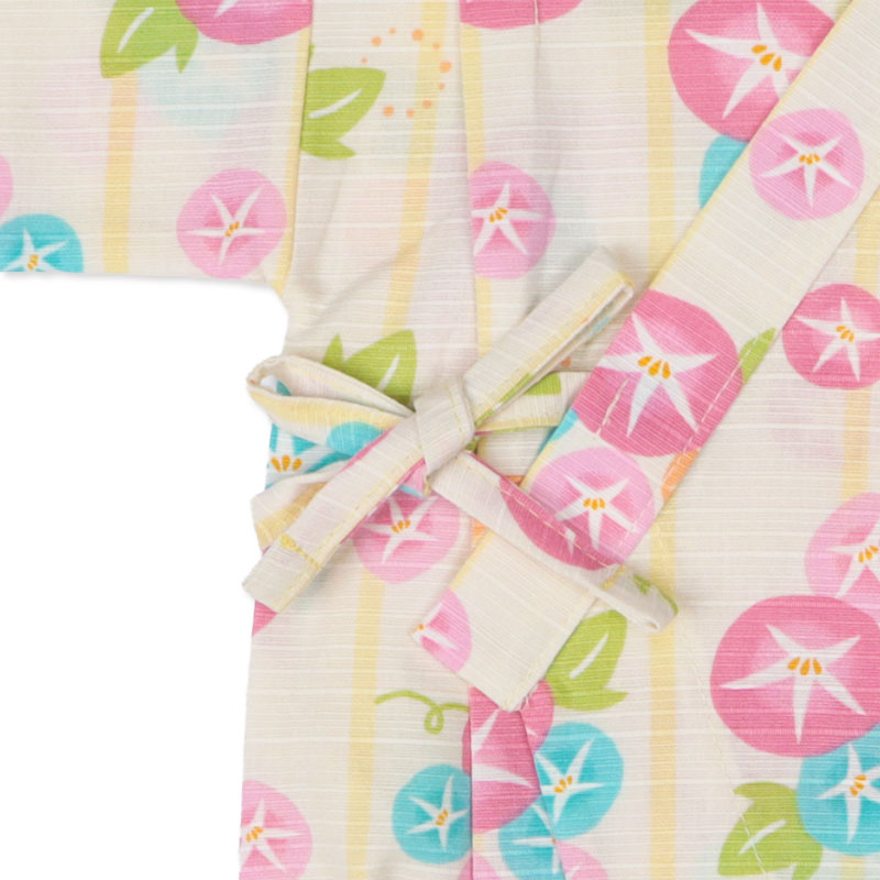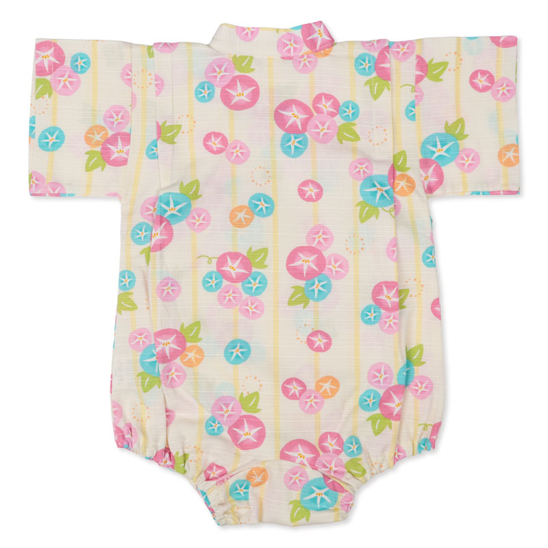 [ベビー]甚平(じんべい)ロンパス 朝顔柄 イエロー