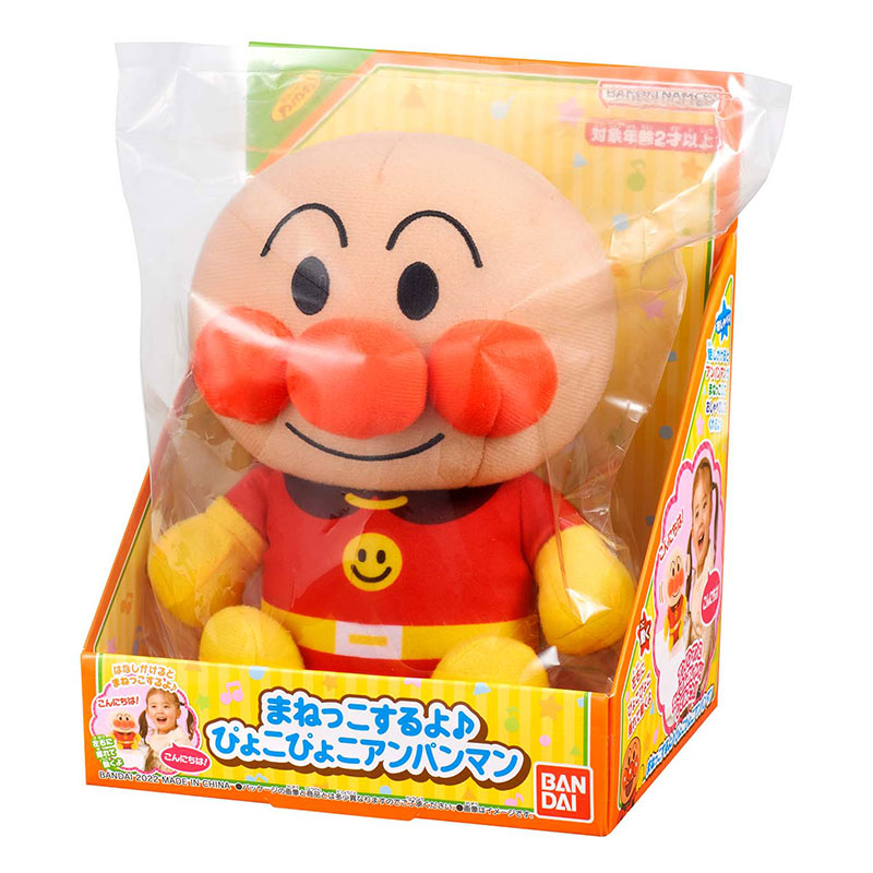 それいけアンパンマンより、まねっこするよぴょこぴょこアンパンマンが登場! 話しかけるとアンパンマンがまねっこしておしゃべりしてくれる。 しゃべりながら左右にぴょこぴょこ揺れる 動きもかわいい全高約18cmのぬいぐるみです。 アンパンマンのおしゃべりも、11種類収録。 くり返しながらことばを覚える2~3才のお子様にもぴったりなアイテムです。