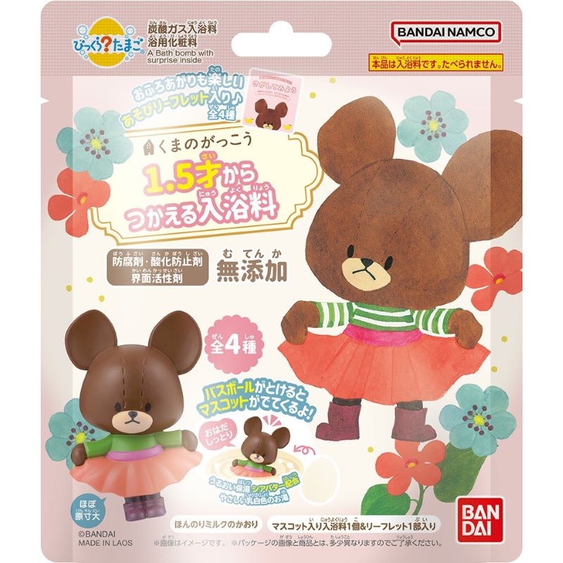 ●材質: マスコット:ABS リーフレット:紙 個包装:PE、PP、M、PET 透明フィルム:PE ●成分:硫酸Na,炭酸水素Na, クエン酸, アミロデキストリン, ポリグリセリンー3, 香料,シア脂,クチナシ黄,酸化チタン ●本体重量:95g