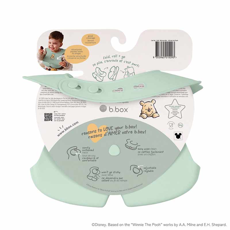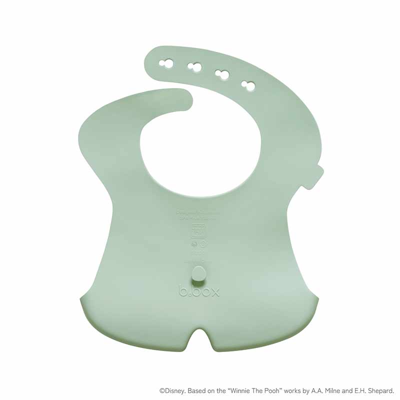 深さもあり、中に仕切りが付いた「ステイオープン」ポケット設計が特徴のシリコンビブです。