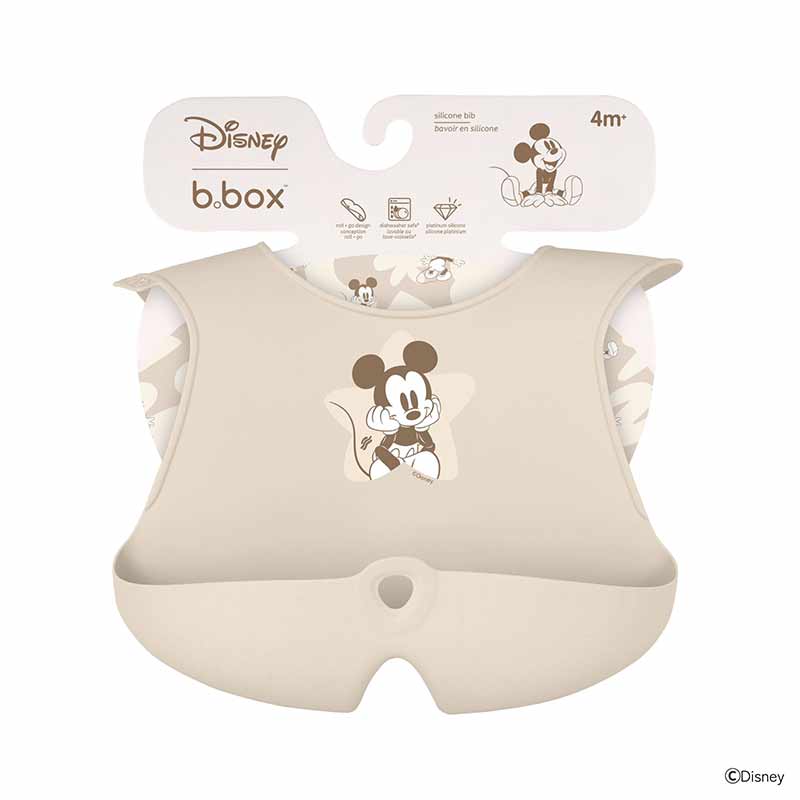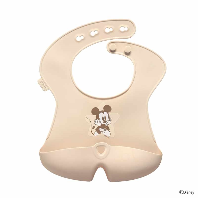 くるんと巻けるシリコンビブ 深さもあり、中に仕切りが付いた「ステイオープン」ポケット設計が特徴のシリコンビブです。 ポケットが塞がらないことで、より多くの食べこぼしをキャッチできます。 非毒性の食品用シリコーン(FDAシリコン)を使用し、水に濡れてもベタつかず、さっと拭き取れば汚れが取れるのでお手入れも簡単です。 使用後は食洗機も使用できます。 お出かけの際にはくるんと丸めて、コンパクトにできるので便利です。 (c)Disney