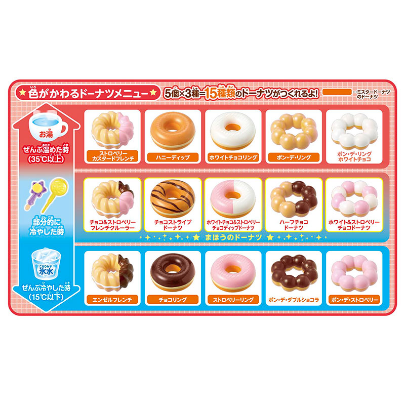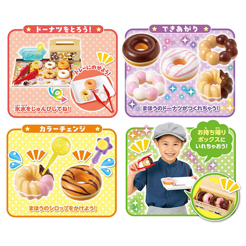 ●対象年齢:3歳~ ●セット内容:ストロベリーリング、チョコリング、ポン・デ・ダブル、ポン・デ・ストロベリー、エンゼルフレンチ、お持ち帰りボックス、トング、まほうのボウル、まほうのスティック、まほうのスポイト、収納ネット、トレー、防水プレイシート ●素材:ABS、EVA、PP、PE、SBR、PET、ポリエステル