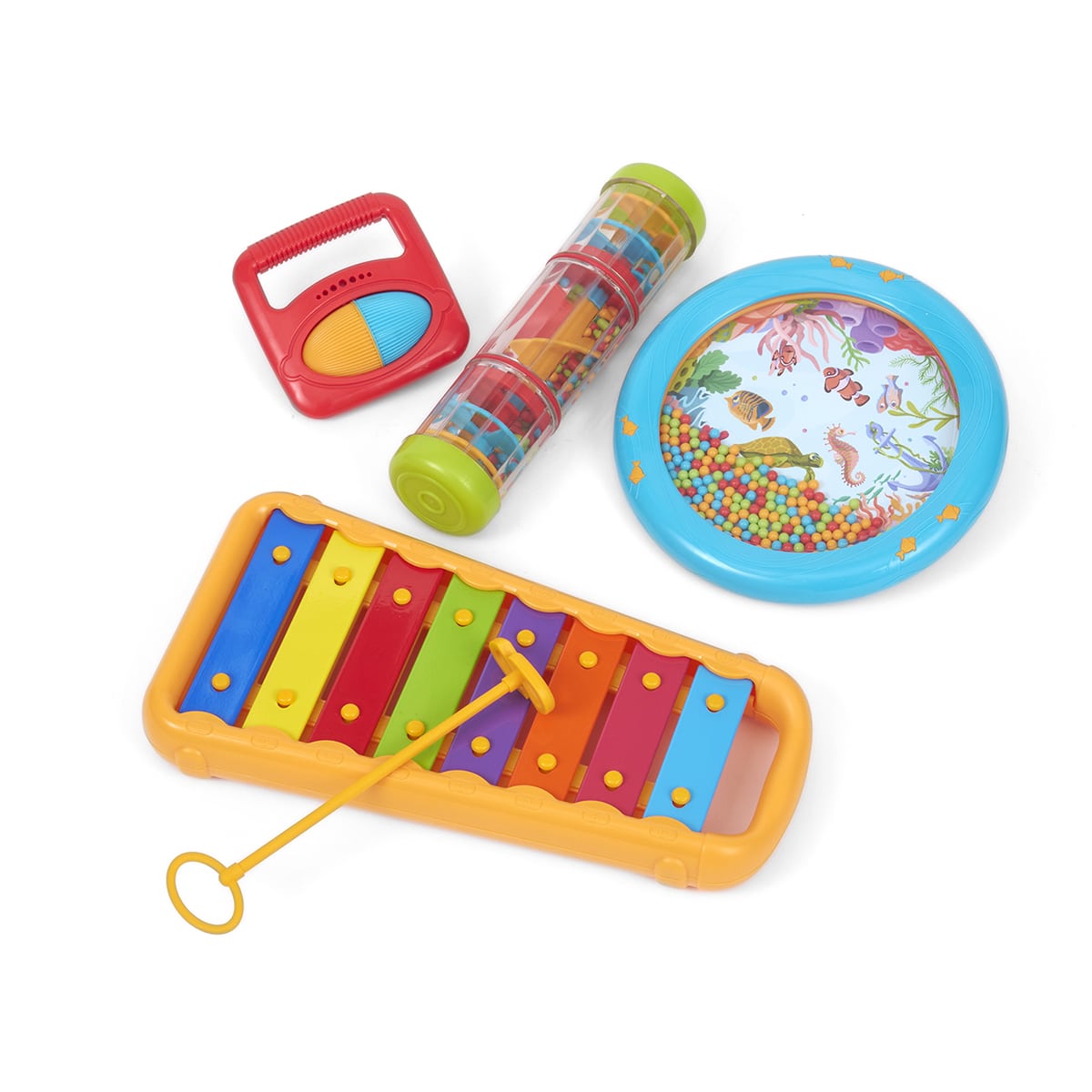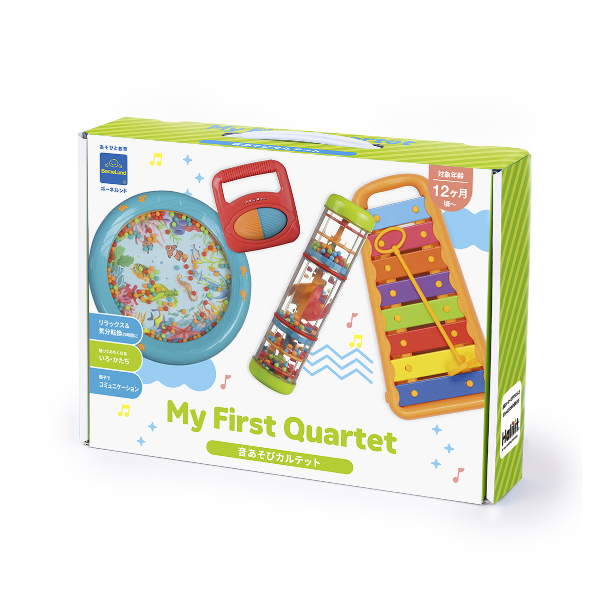 ●対象年齢:12ヵ月~ ●パッケージサイズ:W320×D70×H230mm ●重さ:900g ●セット内容:ミニレインボーメーカー×1、オーシャンドラム×1、グロッケン×1、ローラーラトル×1 ●素材:ABS、PET、アルミ、ポリプロピレン、ポリエチレン、シリコン