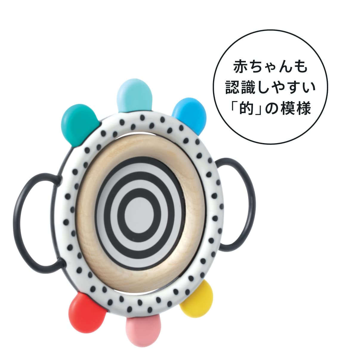 ●対象年齢:3ヵ月~ ●パッケージサイズ:W165×D15×H195mm ●重さ:94g ●素材:木、TPE、ABS、PP、PETG