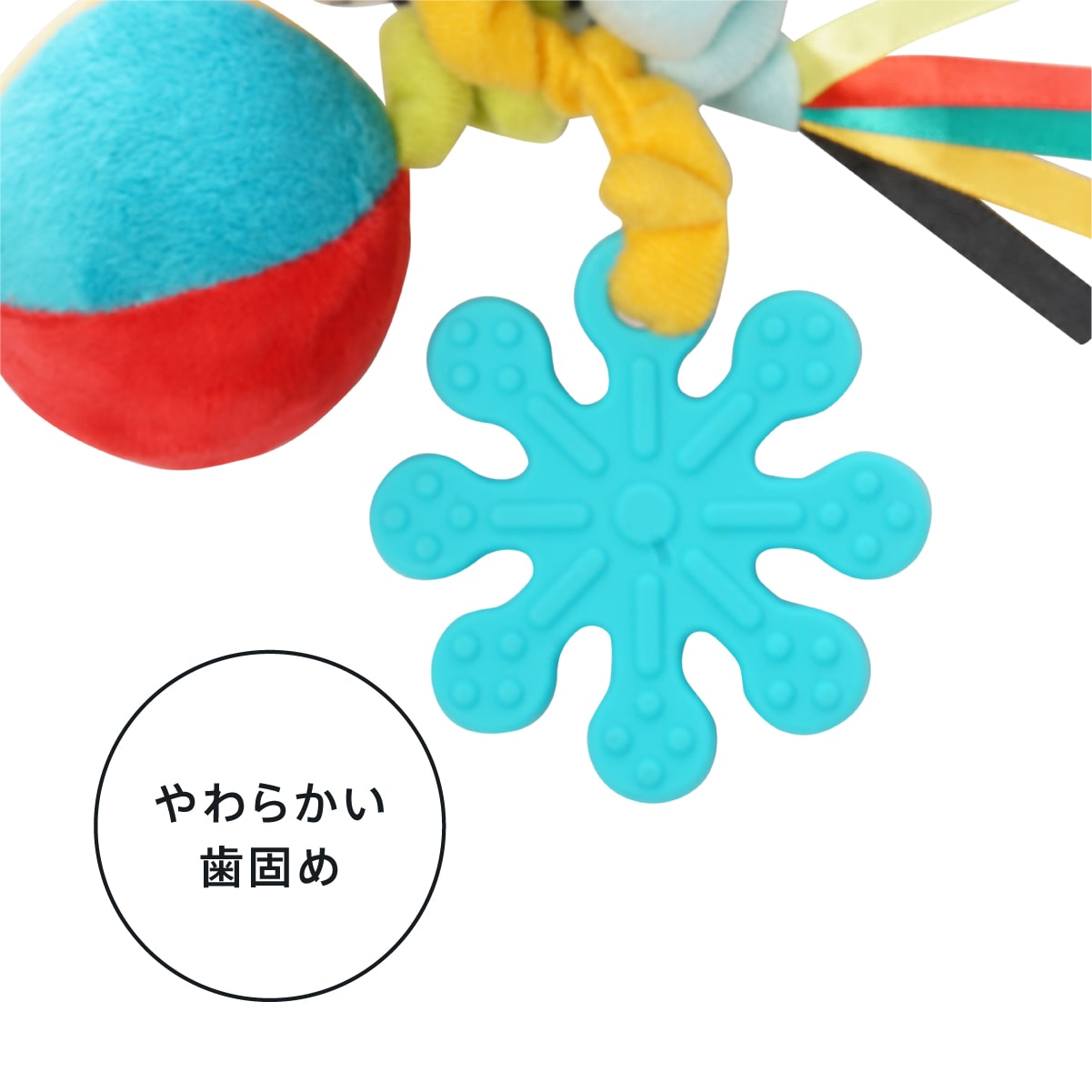 ●対象年齢:0ヵ月~ ●パッケージサイズ:W80×D70×H250mm ●重さ:65g ●素材:ポリエステル、PP、TPE