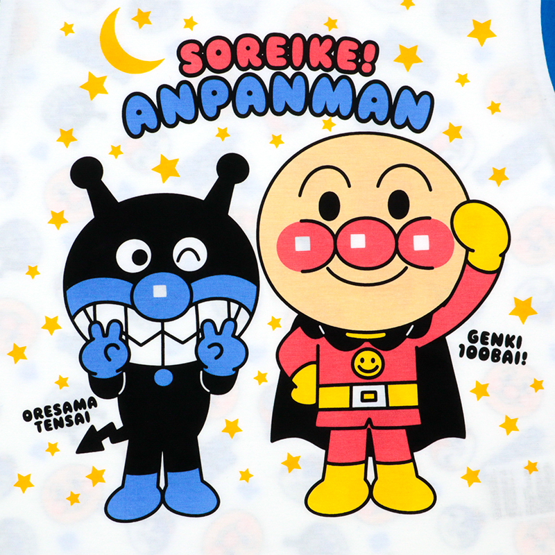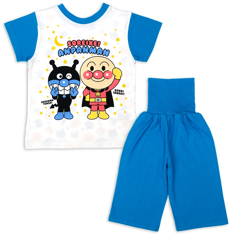 ●素材=本体 綿100% 腹巻部分 綿98% ポリウレタン2% ●サイズ(約・cm)= [80](トップス)着丈36 背肩巾26.5 身巾31 袖丈9.5 (ズボン)ズボン丈32 股上16 腹巻巾16 ヒップ巾31.5 [90](トップス)着丈39 背肩巾27.5 身巾32 袖丈10 (ズボン)ズボン丈35 股上17 腹巻巾16 ヒップ巾32.5 [95](トップス)着丈41 背肩巾28.5 身巾33 袖丈10.5 (ズボン)ズボン丈38 股上18 腹巻巾16 ヒップ巾33 [100](トップス)着丈44.5 背肩巾29.5 身巾34 袖丈11 (ズボン)ズボン丈42 股上19 腹巻巾16 ヒップ巾35 ●洗濯表示=洗濯可 ●原産国=中国製 (C)やなせたかし/フレーベル館・TMS・NTV