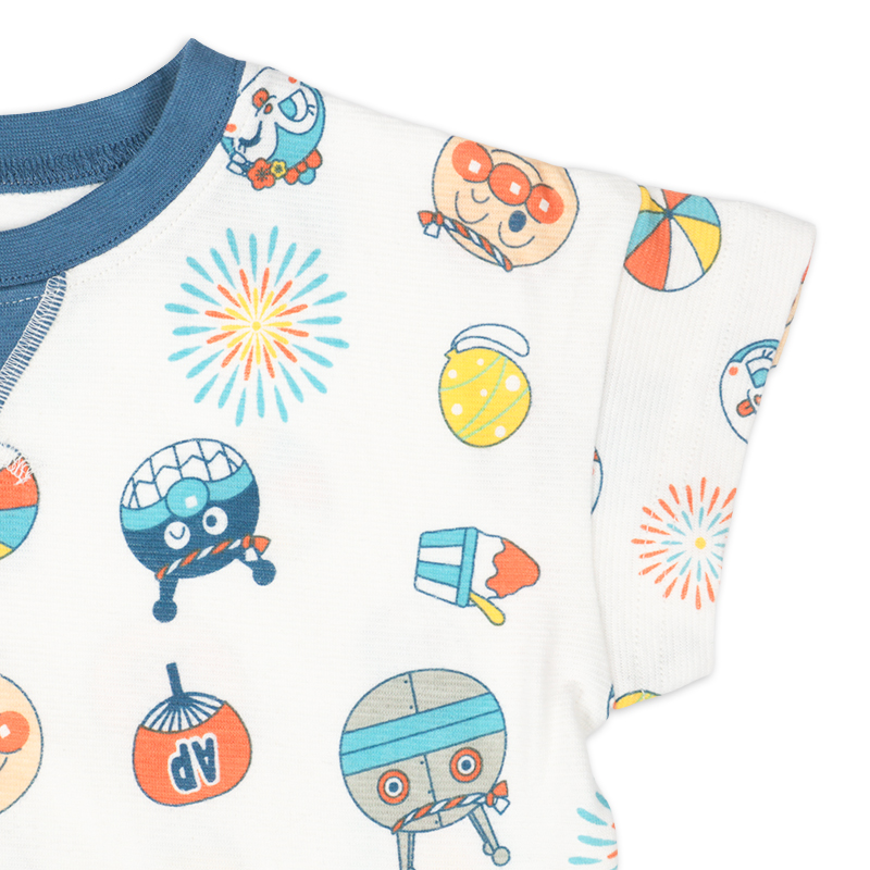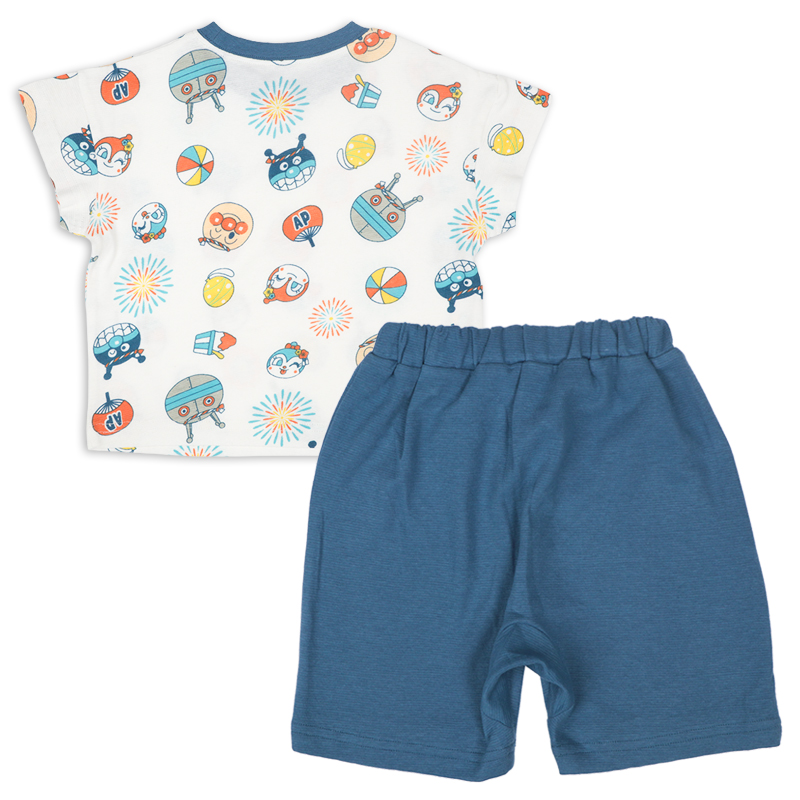 ●素材=綿100% ●サイズ(約・cm)= [80](トップス)着丈33 背肩巾34 身巾32 袖丈5 (ズボン)ズボン丈29 前股上19 ウエスト上がり幅18 ウエスト伸び張り31.5 ヒップ幅32 [90](トップス)着丈36 背肩巾35 身巾33 袖丈5.5 (ズボン)ズボン丈31.5 前股上19.5 ウエスト上がり幅19 ウエスト伸び張り32.5 ヒップ幅33 [95](トップス)着丈38 背肩巾36 身巾34 袖丈6 (ズボン)ズボン丈33.5 前股上20 ウエスト上がり幅20 ウエスト伸び張り33.5 ヒップ幅34 [100](トップス)着丈40 背肩巾37 身巾35 袖丈6.5 (ズボン)ズボン丈37 前股上20.5 ウエスト上がり幅21 ウエスト伸び張り34.5 ヒップ幅35 ●洗濯表示=洗濯可 ●原産国=バングラデシュ製 (C)やなせたかし/フレーベル館・TMS・NTV