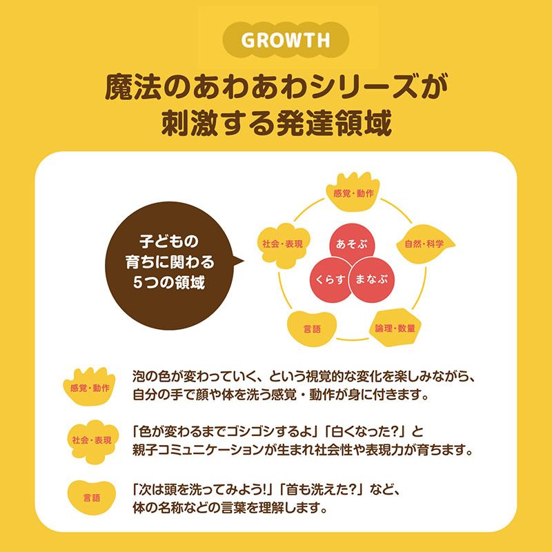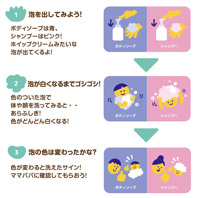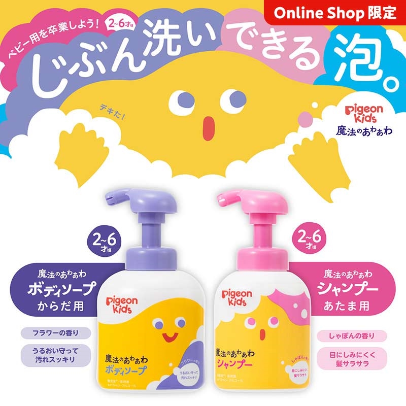 [魔法のあわあわボディーソープ] ●内容量:400ml 皮フ科医による皮フ刺激性テスト済み(すべての方に皮フ刺激が発生しないということではありません) 無添加(パラベン、アルコール)・硫酸系界面活性剤、シリコーン不使用 [魔法のあわあわシャンプー] ●内容量:350ml 皮フ科医による皮フ刺激性テスト済み(すべての方に皮フ刺激が発生しないということではありません) 無添加(パラベン、アルコール) 硫酸系界面活性剤、シリコーン不使用