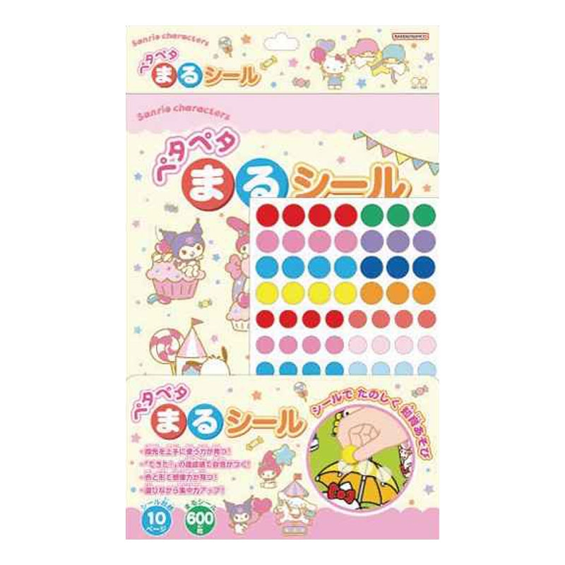 ●対象年齢:3歳~ ●本体サイズ(横×奥行×縦):約210×3×343mm ●製品重量:99g ●内容: シール台紙:10ページ まるシール:600枚 (c)SANRIO