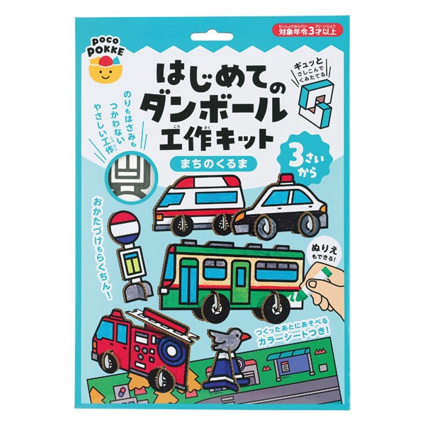 小さなお子様の「はじめての工作」に最適のキット! 差し込むだけで組み立てられるので、のりやはさみは不要です。 パーツのひらがなマークを目印に、説明書なしで簡単に作れます。 完成品をのせるカラーシート付きでごっこ遊びも楽しめます。