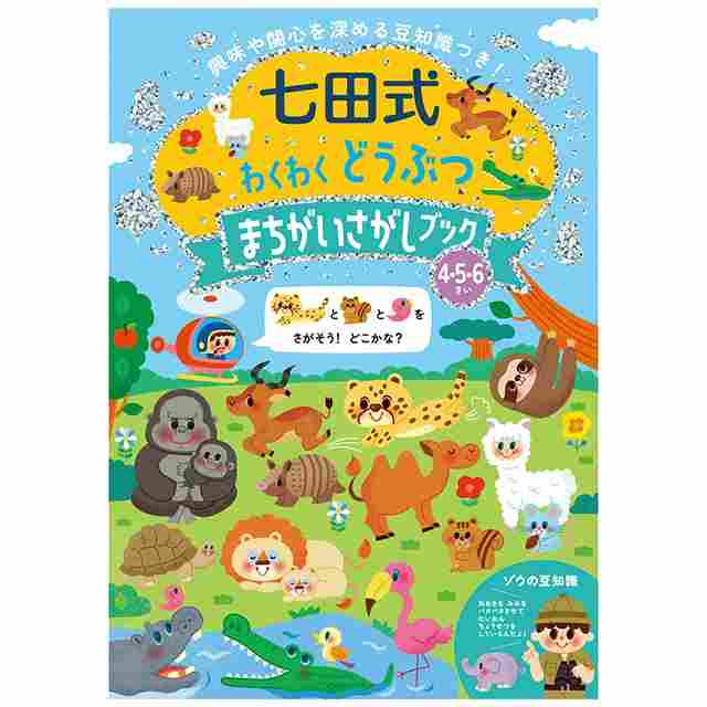 七田式のまちがいさがしブック! 興味や関心を深める動物豆知識つき! 動物のまちがいさがしが、たっぷり40問! タイトルや豆知識を読んで、親子で楽しみながら動物に詳しくなれます! すべて解き終わったら、巻末の「にんていしょう」を贈呈しましょう! ぜんぶできたら、どうぶつはかせ!
