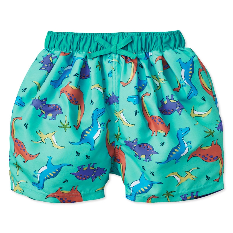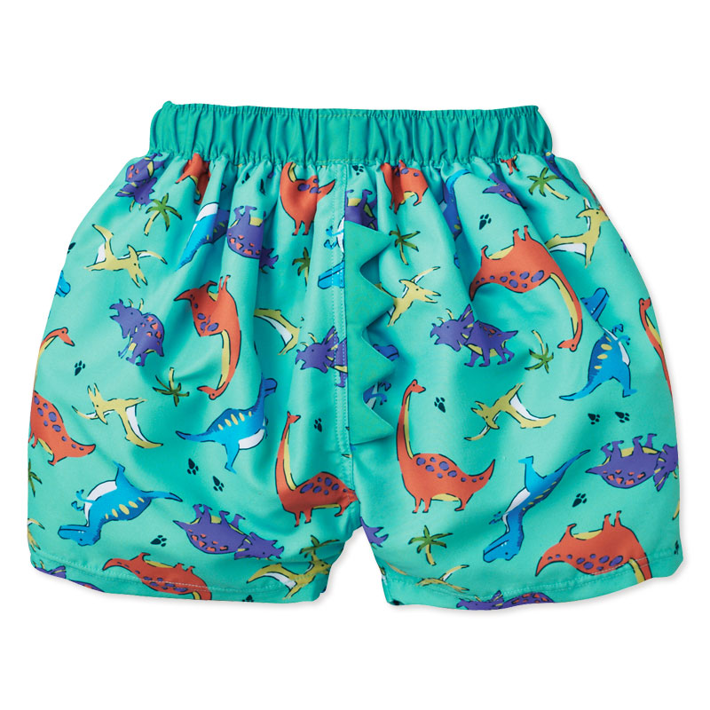 赤ちゃん本舗オリジナルデザインの総柄サーフパンツです。男の子が大好きな恐竜を総柄にしたサーフパンツです。ポップなグリーンカラーの総柄です。ウエストにタックが入ったふっくらシルエットのショート丈のパンツになっています。恐竜の立体モチーフもかわいいポイントです。UVカット素材を使用しています。