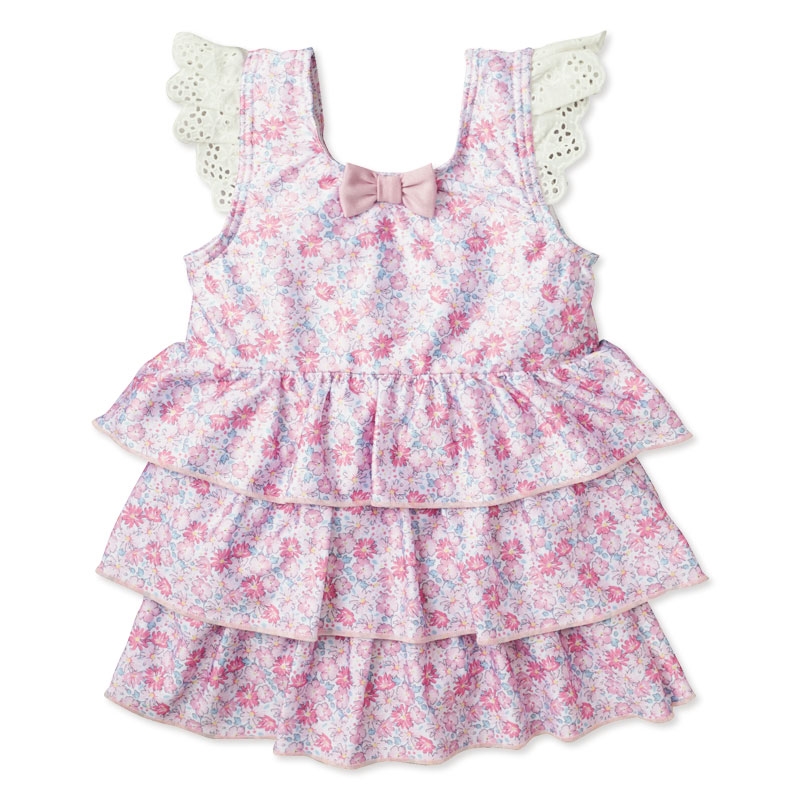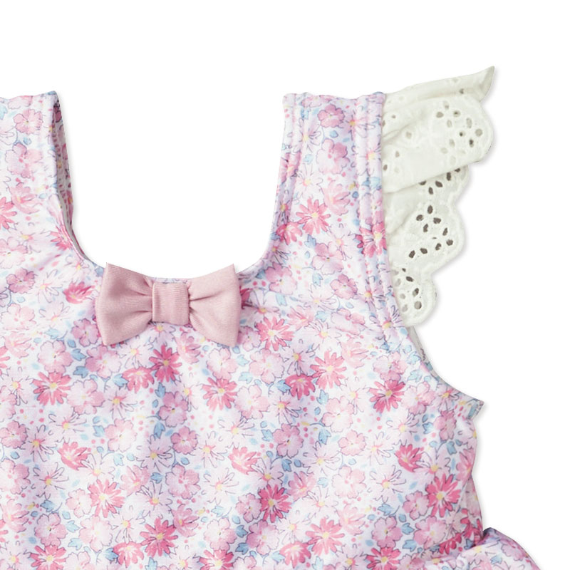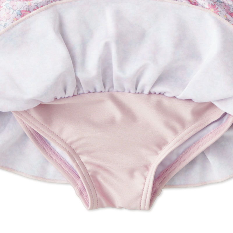 ●素材: [本体]ポリエステル85%・ポリウレタン15% [レース部分]綿100% ●商品サイズ(約・cm): 80(身丈38・身幅22・腰まわり22・スカート丈19.5) 90(身丈40・身幅23・腰まわり23・スカート丈20.5) 95(身丈41.5・身幅24・腰まわり24・スカート丈21.5)