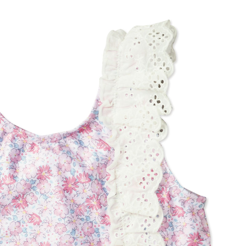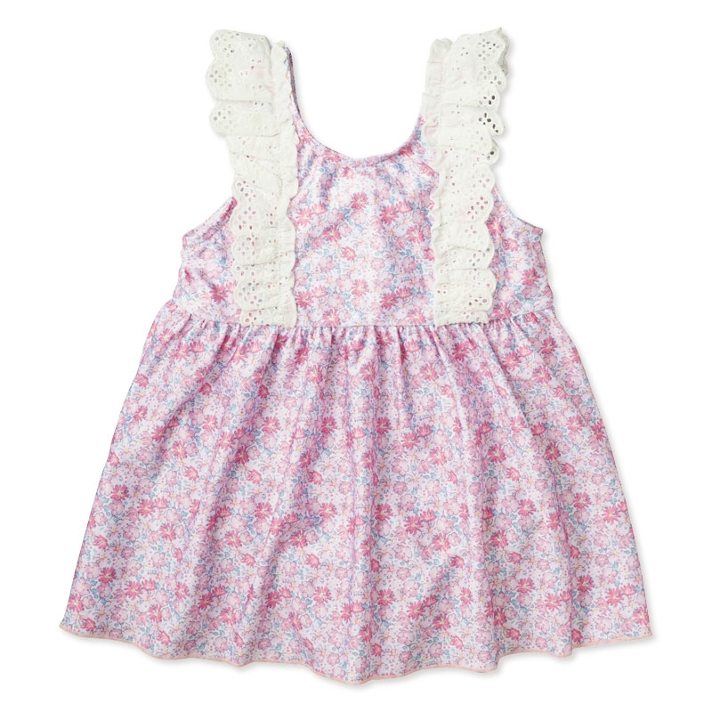 ●素材: [本体]ポリエステル85%・ポリウレタン15% [レース部分]綿100% ●商品サイズ(約・cm): 100(身丈42.5・身幅25・腰まわり25・スカート丈22.5) 110(身丈45・身幅27・腰まわり27・スカート丈24) 120(身丈47.5・身幅29・腰まわり29・スカート丈25.5)