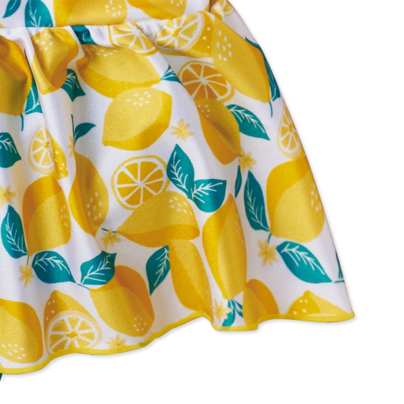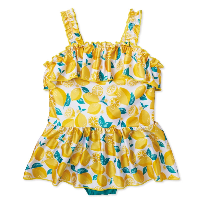 ●商品サイズ(約・cm): 100(身丈42.5・身幅25・腰まわり25・スカート丈14) 110(身丈45・身幅27・腰まわり27・スカート丈15) 120(身丈47.5・身幅29・腰まわり29・スカート丈16) ●素材:ポリエステル85%・ポリウレタン15%