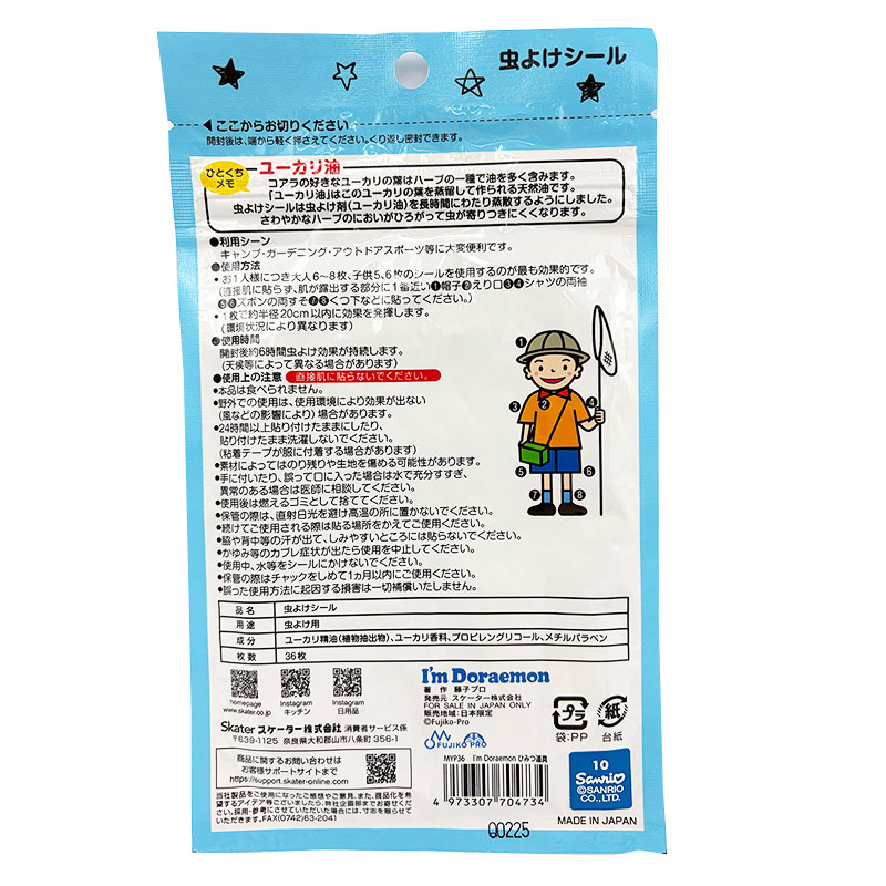 ●対象月齢:0ヵ月~ ●成分:ユーカリ精油(植物抽出物)、ユーカリ香料、プロピレングリコール、メチルパラペン ●36枚入り ●商品サイズ(約)23×28mm(1枚のサイズ) ●直接肌に貼らないで下さい。 ●24時間以上貼り付けたままにしたり、貼り付けたまま洗濯しないでください。(粘着テープが服に付着する場合があります。) ●日本製"